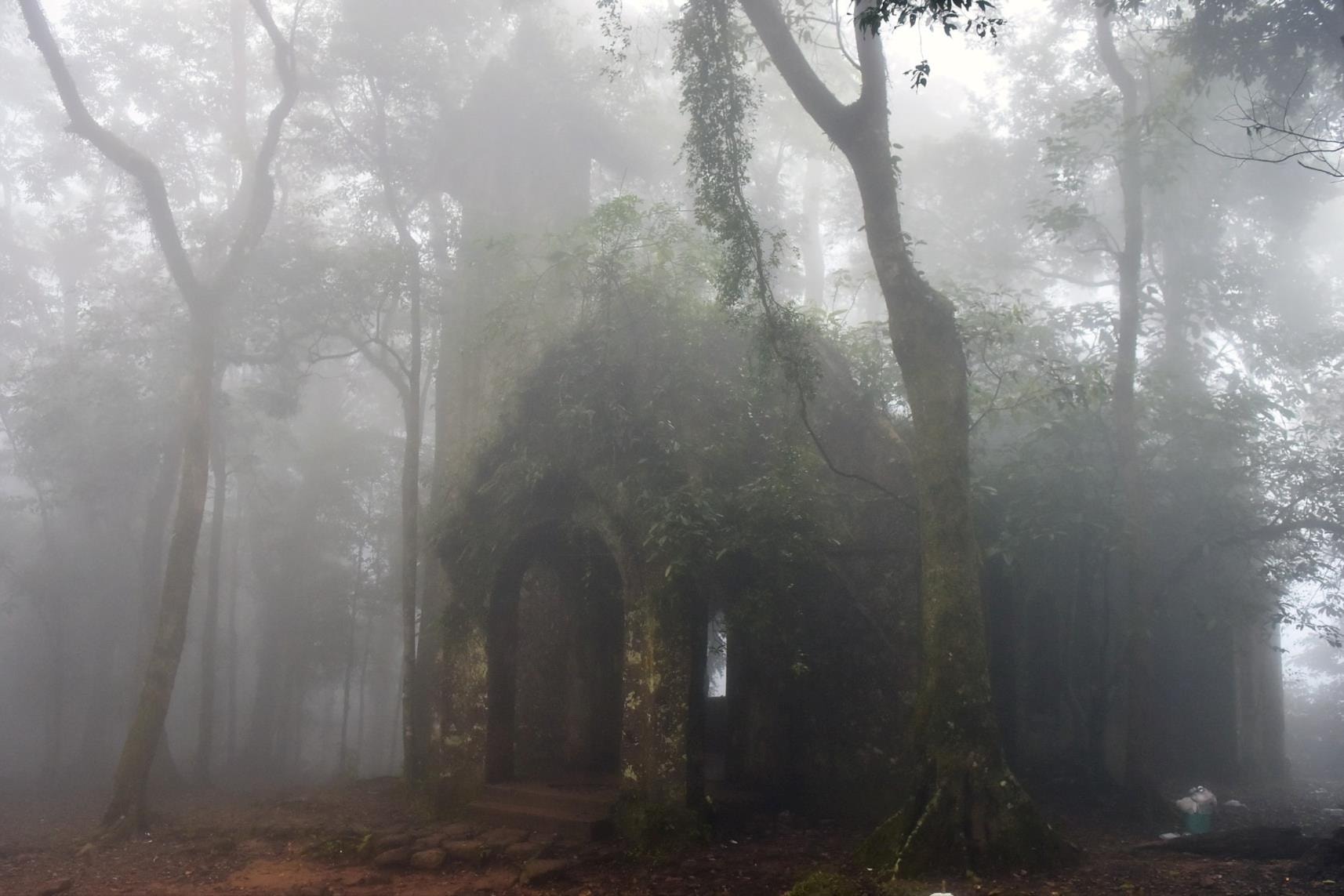Giữa thảm rừng xanh, công trình đá cổ hiện lên lặng lẽ như một phần tự nhiên của núi rừng.