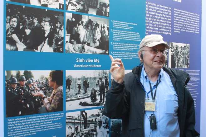 Góp mặt tại trưng bày, ông Ad Spijkers - cựu cán bộ người Hà Lan từng làm việc cho Tổ chức Nông Lương Liên hợp quốc (FAO) và nhiếp ảnh gia người Anh Andy Solomon xúc động, kể bản thân đều từng xuống đường phản đối Mỹ xâm lược Việt Nam.