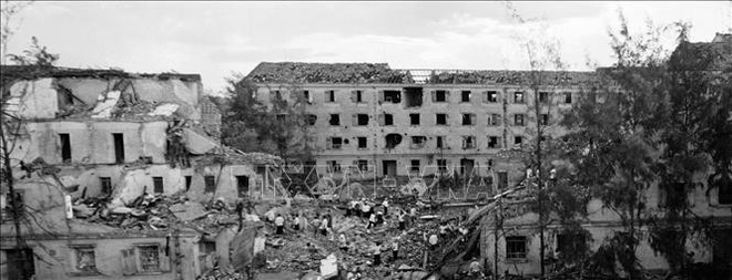 Hiện trường Bệnh viện Bạch Mai bị dội bom làm hàng chục người chết năm 1972. (Ảnh: TTXVN)