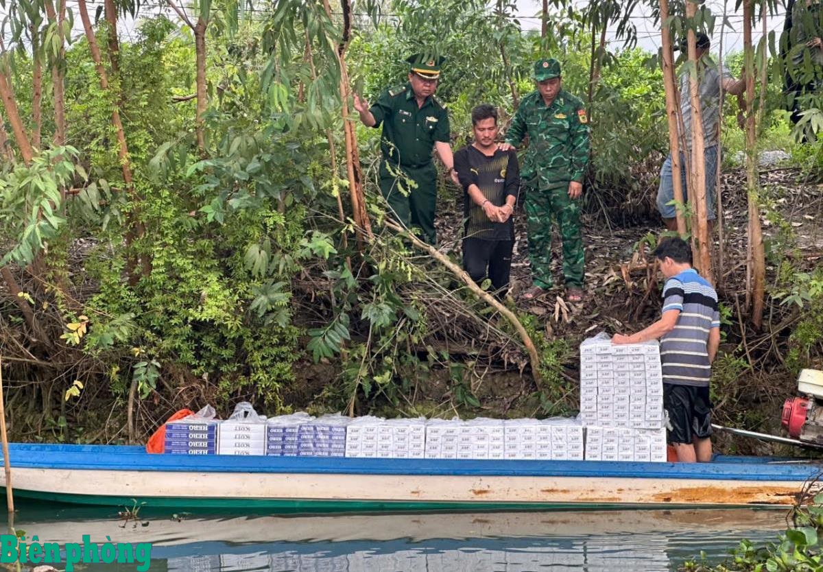 Bộ đội Biên phòng tỉnh Tây Ninh bắt giữ đối tượng vận chuyển thuốc lá ngoại nhập lậu. Ảnh: Hải Yến