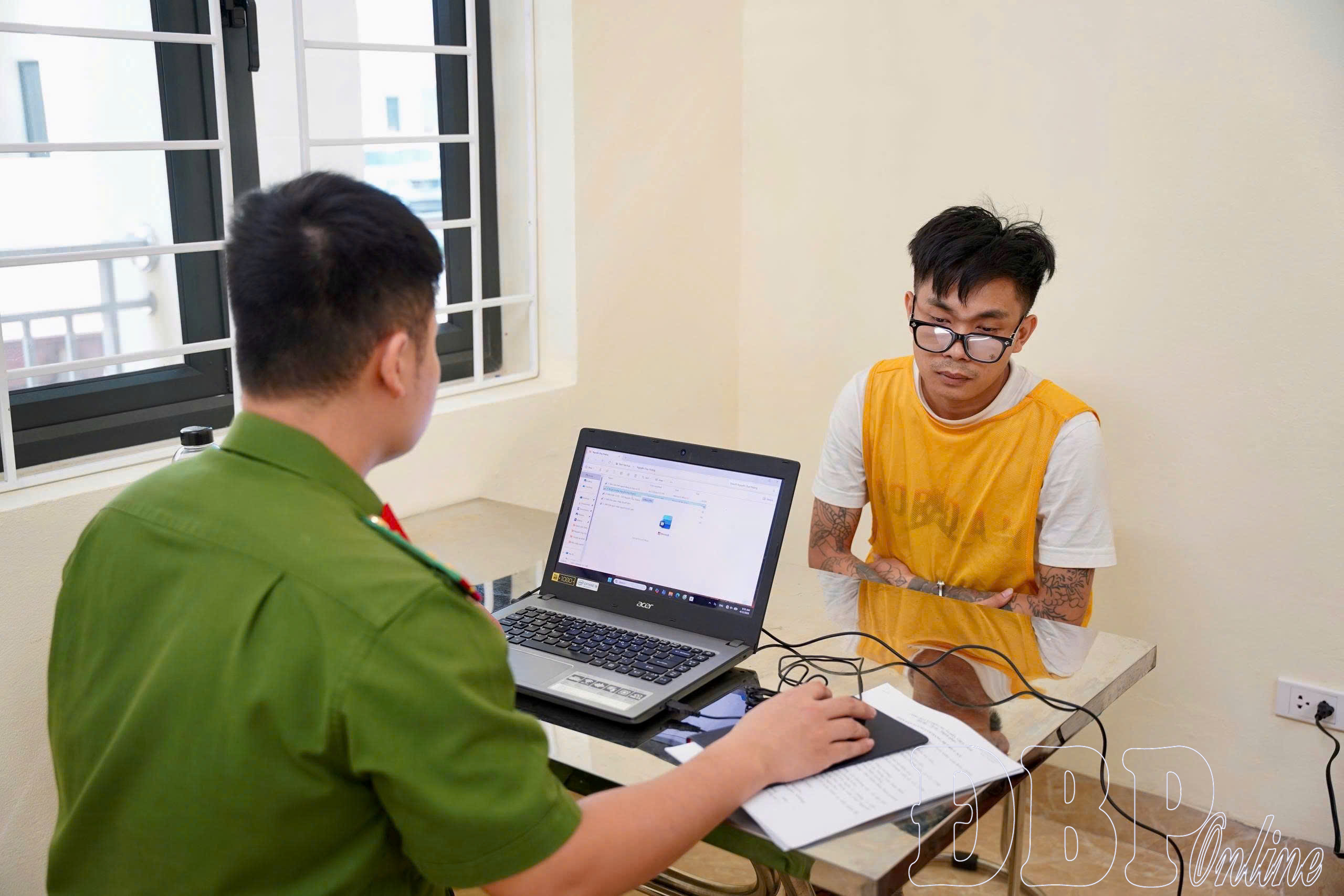 Công an lấy lời khai đối tượng trong Chuyên án 426H bị triệt phá ngày 10/4/2026.