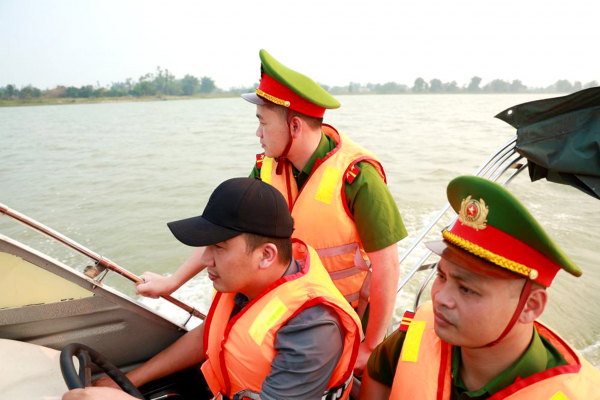Lực lượng Công an tăng cường công tác tuần tra, kiểm soát tình hình khai thác cát trái phép trên sông Lam khu vực giáp ranh giữa Nghệ An và Hà Tĩnh.