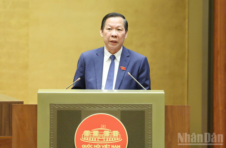 Chủ nhiệm Ủy ban Kinh tế và Tài chính của Quốc hội Phan Văn Mãi trình bày báo cáo thẩm tra. (Ảnh: DUY LINH)