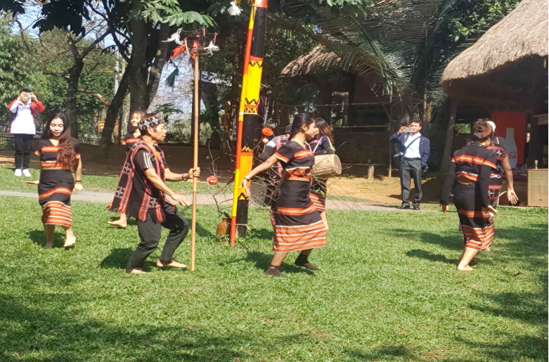 Người Tà Ôi biểu diễn điệu múa văn hóa dân tộc. Ảnh: Đức Nguyên
