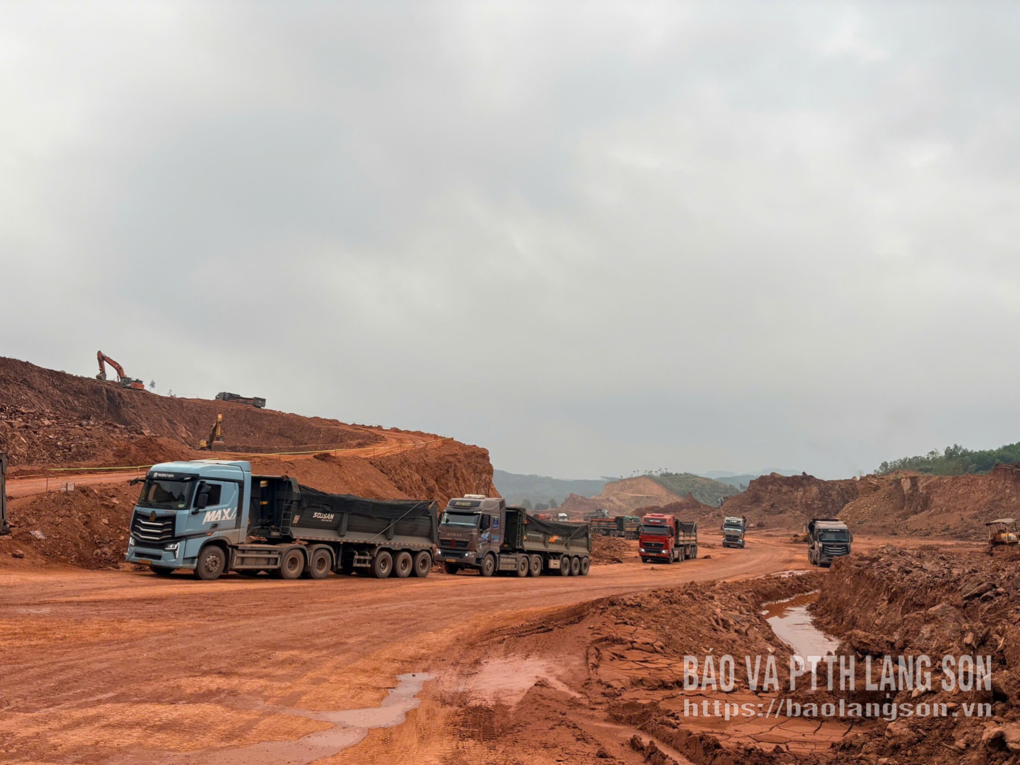 Các phương tiện, máy móc được nhà đầu tư huy động để thi công dự án cụm công nghiệp Hòa Sơn 1