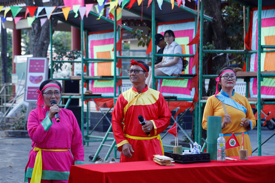 Hô bài chòi trong khuôn viên Bảo tàng Quang Trung. Ảnh: H.P