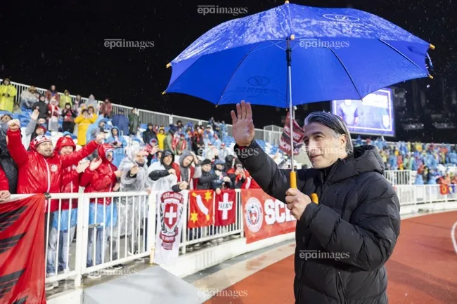 HLV Murat Yakin hoàn thành nhiệm vụ dẫn dắt Thụy Sĩ giành quyền chơi cúp thế giới 2026. Ảnh: EPA.