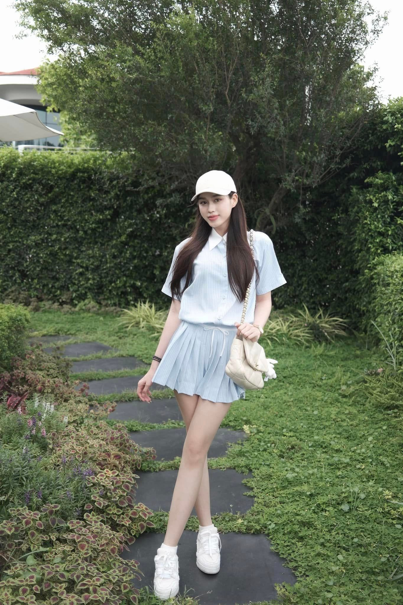 Nhờ tỷ lệ cơ thể siêu chuẩn, đôi chân dài miên man nên dù có đi giày bệt, Hoa hậu Đỗ Thị Hà vẫn khoe được vóc dáng thanh mảnh.