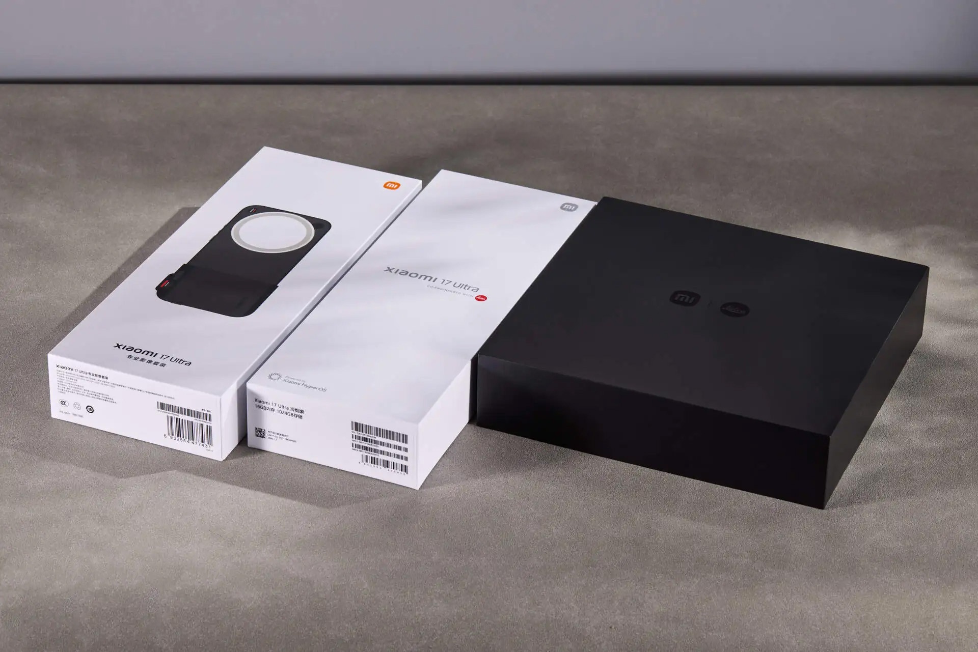 Xiaomi 17 Ultra thiết lập kỷ lục về dung lượng pin trong lịch sử dòng Ultra khi sở hữu viên pin Silicone - Carbon 6.800 mAh. Thiết bị hỗ trợ công nghệ sạc nhanh 90 W (tương thích giao thức Mi Turbo và PPS), sạc không dây 50 W, cùng khả năng sạc ngược có dây và không dây với công suất 20 W. Đáng chú ý, dù công suất sạc tối đa của máy là 90 W, hãng vẫn tặng kèm củ sạc Mi Turbo 100 W. Ảnh: Weibo/Xiaomi.