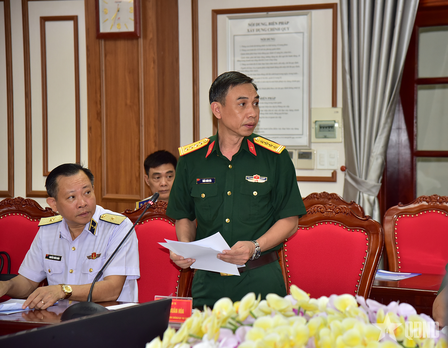 Thiếu tướng Hoàng Hữu Chiến, Phó tư lệnh, Tham mưu trưởng Bộ đội Biên phòng phát biểu tại buổi làm việc.