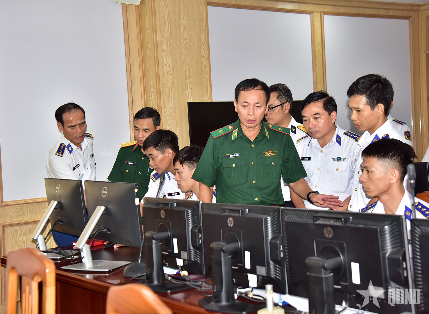 Đoàn công tác Bộ Quốc phòng kiểm tra thực hiện phòng, chống khai thác IUU tại Trung tâm Sở chỉ huy Vùng Cảnh sát biển 4.