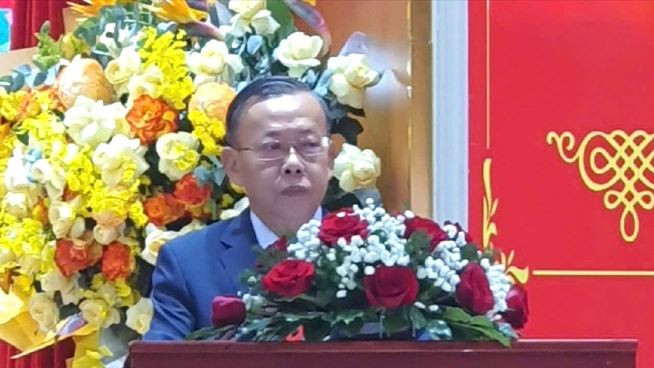 Chủ tịch Hội hữu nghị Việt Nam - Trung Quốc TPHCM Nguyễn Hữu Hiệp đọc báo cáo tại đại hội