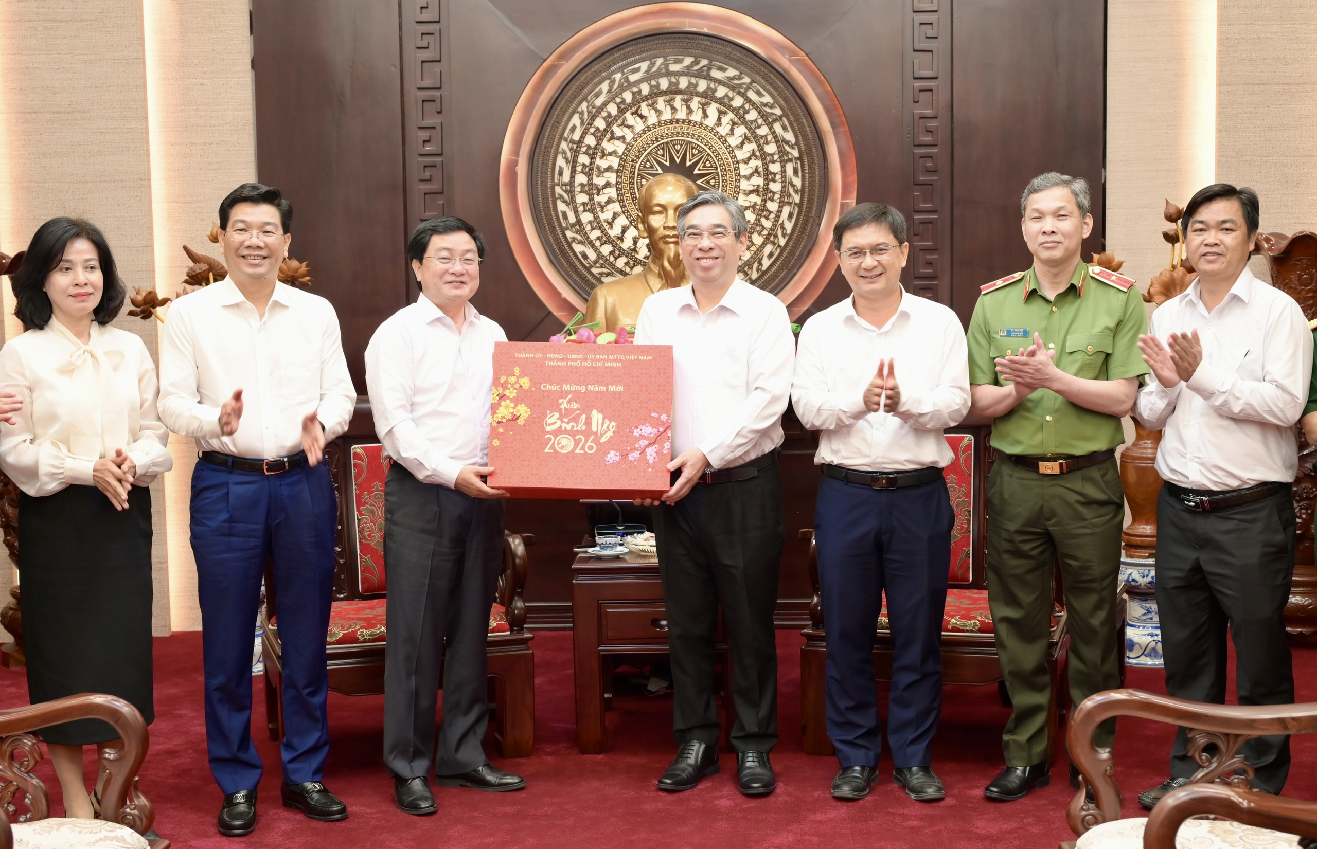 Đồng chí Nguyễn Phước Lộc, Ủy viên Trung ương Đảng, Phó Bí thư Thành ủy, Chủ tịch Ủy ban MTTQ Việt Nam TPHCM tiếp đoàn lãnh đạo tỉnh Tây Ninh đến thăm, chúc tết