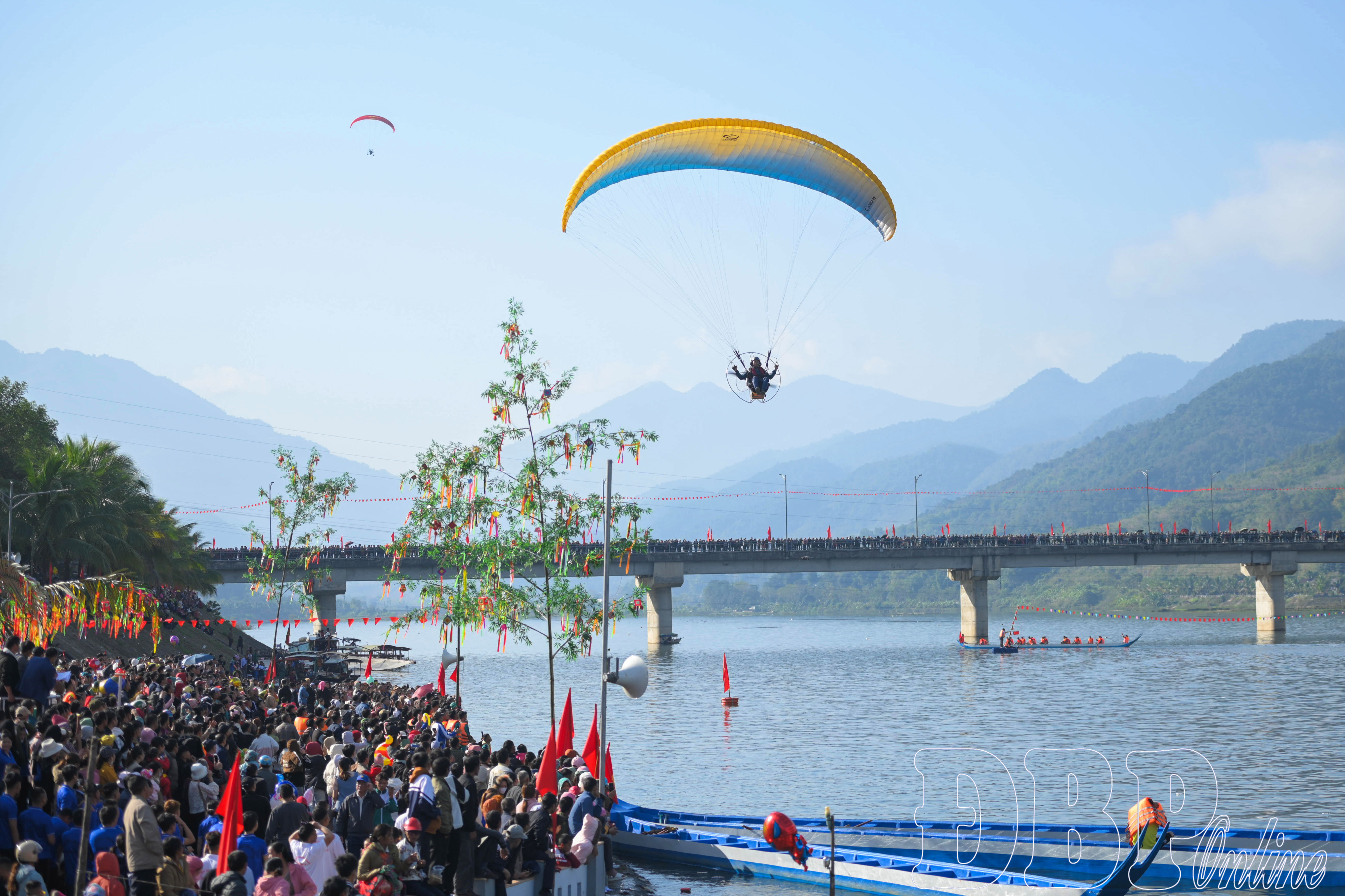 Người dân, du khách hòa mình vào không khí Lễ hội Đua thuyền đuôi én phường Mường Lay.