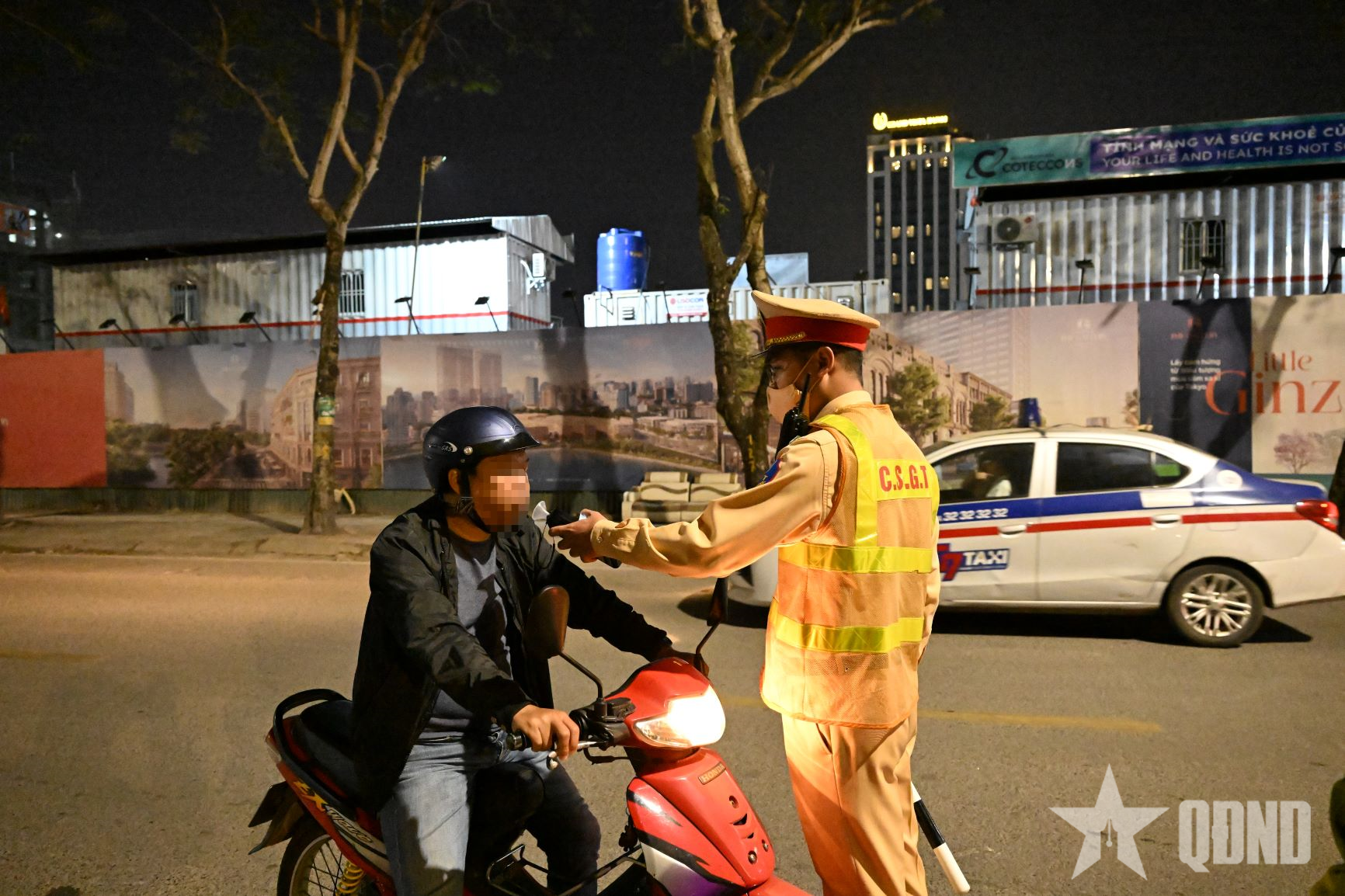 Lực lượng Cảnh sát giao thông và Công an phường Giảng Võ phối hợp kiểm tra vi phạm nồng độ cồn.