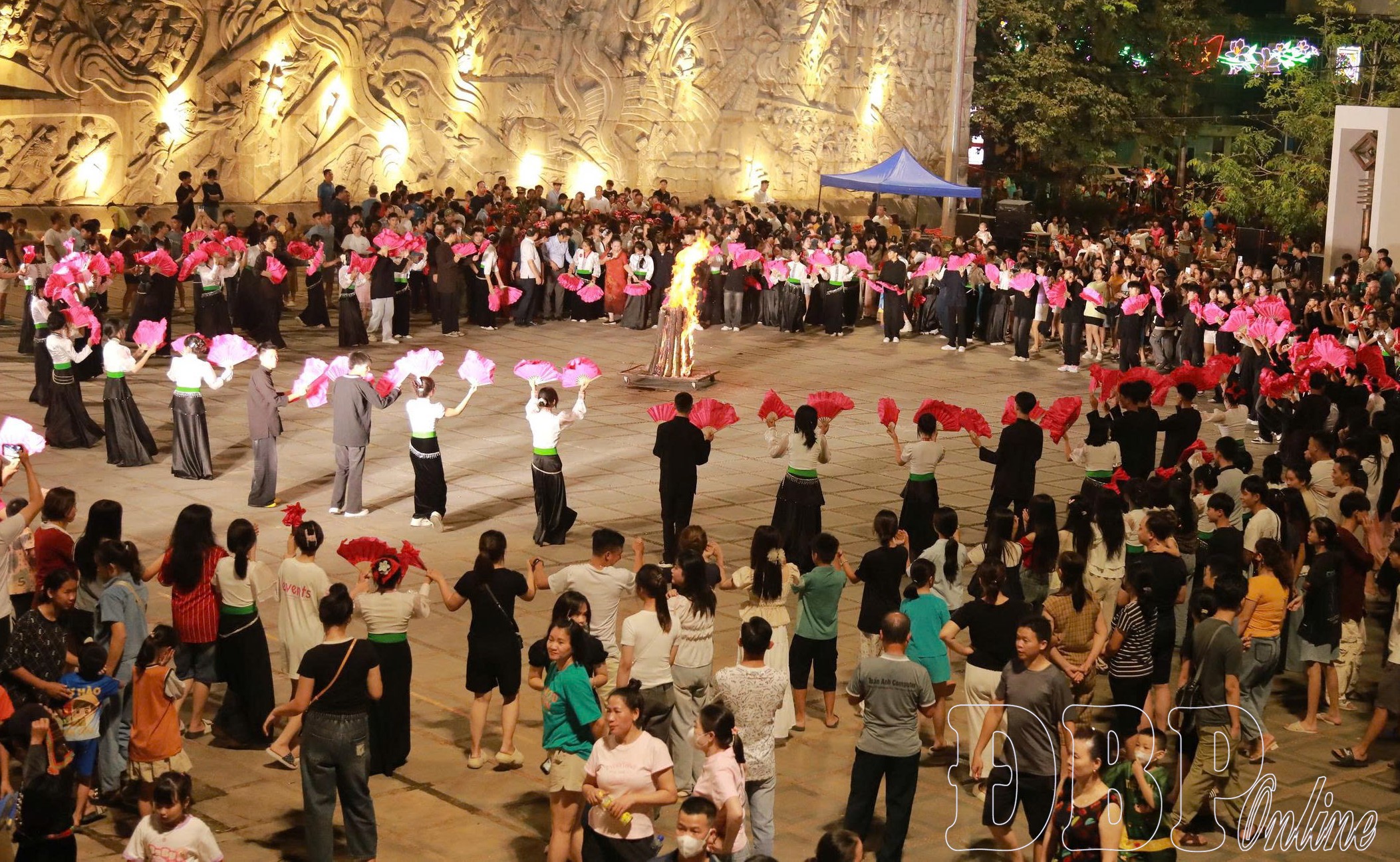 Du lịch là ngành kinh tế mũi nhọn được tỉnh đẩy mạnh hợp tác, liên kết phát triển. Trong ảnh: Người dân và du khách tham gia hoạt động văn hóa, văn nghệ tại Festival Tinh hoa Tây Bắc - Điện Biên năm 2025.