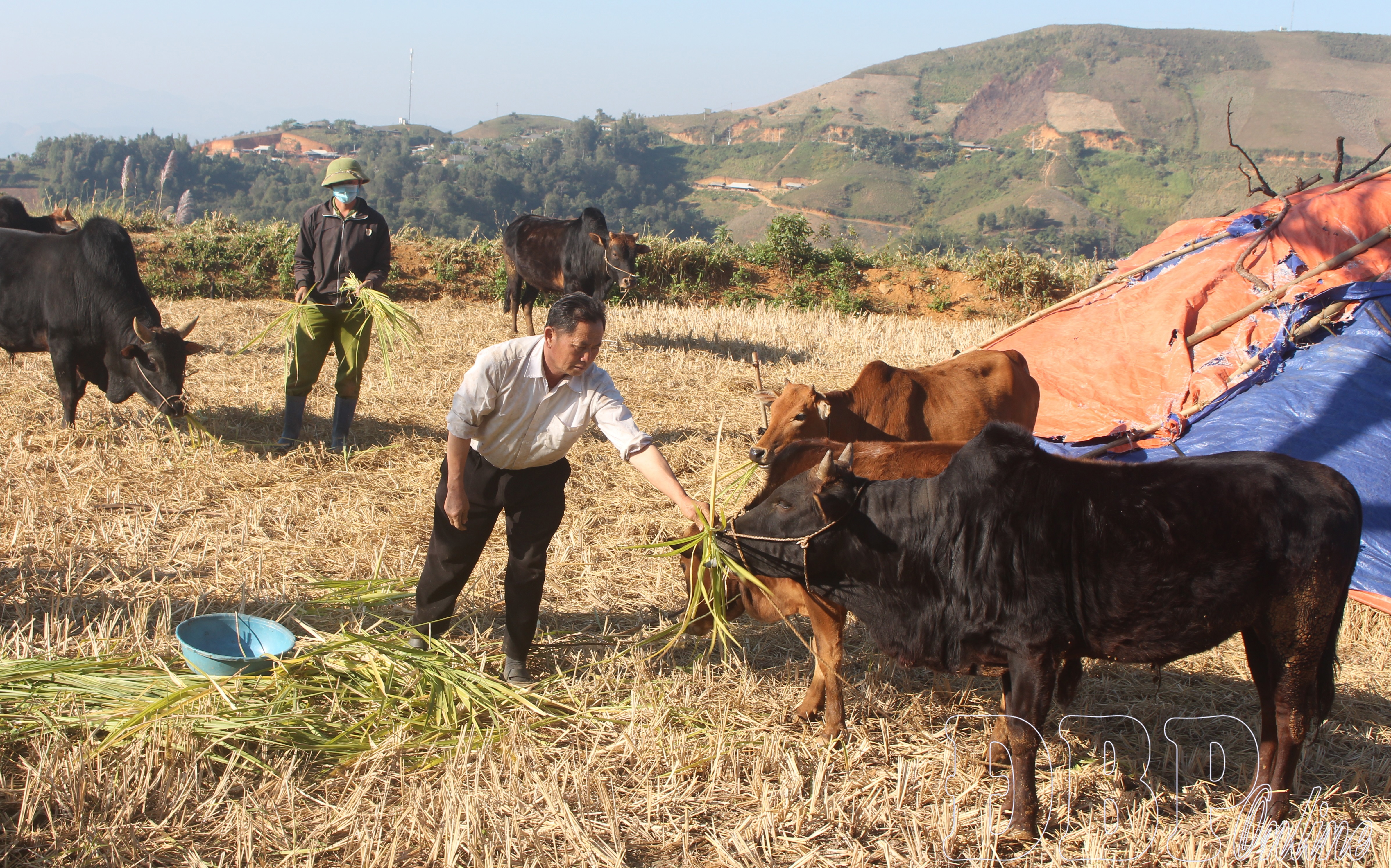 Vùng chăn nuôi tập trung được hình thành tại một số địa phương trong tỉnh. Trong ảnh: Người dân xã Xa Dung chăm sóc đàn bò.