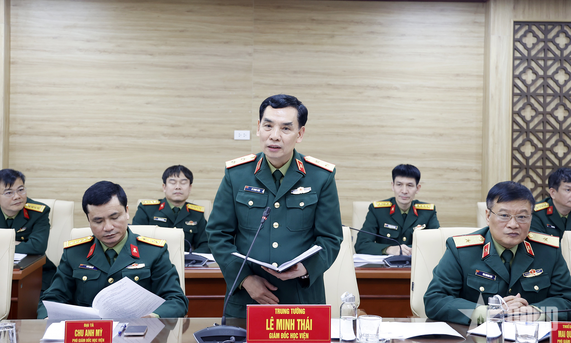 Phát biểu tại hội nghị, Thiếu tướng, TS Dương Minh Hải, Cục trưởng Cục Khoa học Quân sự đánh giá cao kết quả công tác khoa học quân sự của Học viện Kỹ thuật Quân sự năm 2025. Đề nghị thời gian tới, Học viện Kỹ thuật Quân sự tập trung nguồn lực, phối hợp chặt chẽ với Cục Khoa học Quân sự và các cơ quan, đơn vị để hoàn thành các chương trình, đề án, nhiệm vụ KHCN, bảo đảm đúng tiến độ và chất lượng.