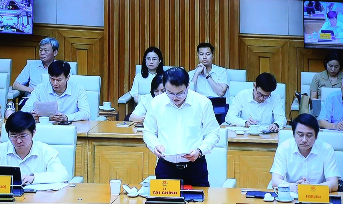 Đại diện Bộ Tài chính báo cáo kết quả thực hiện tại hội nghị (Ảnh chụp màn hình).