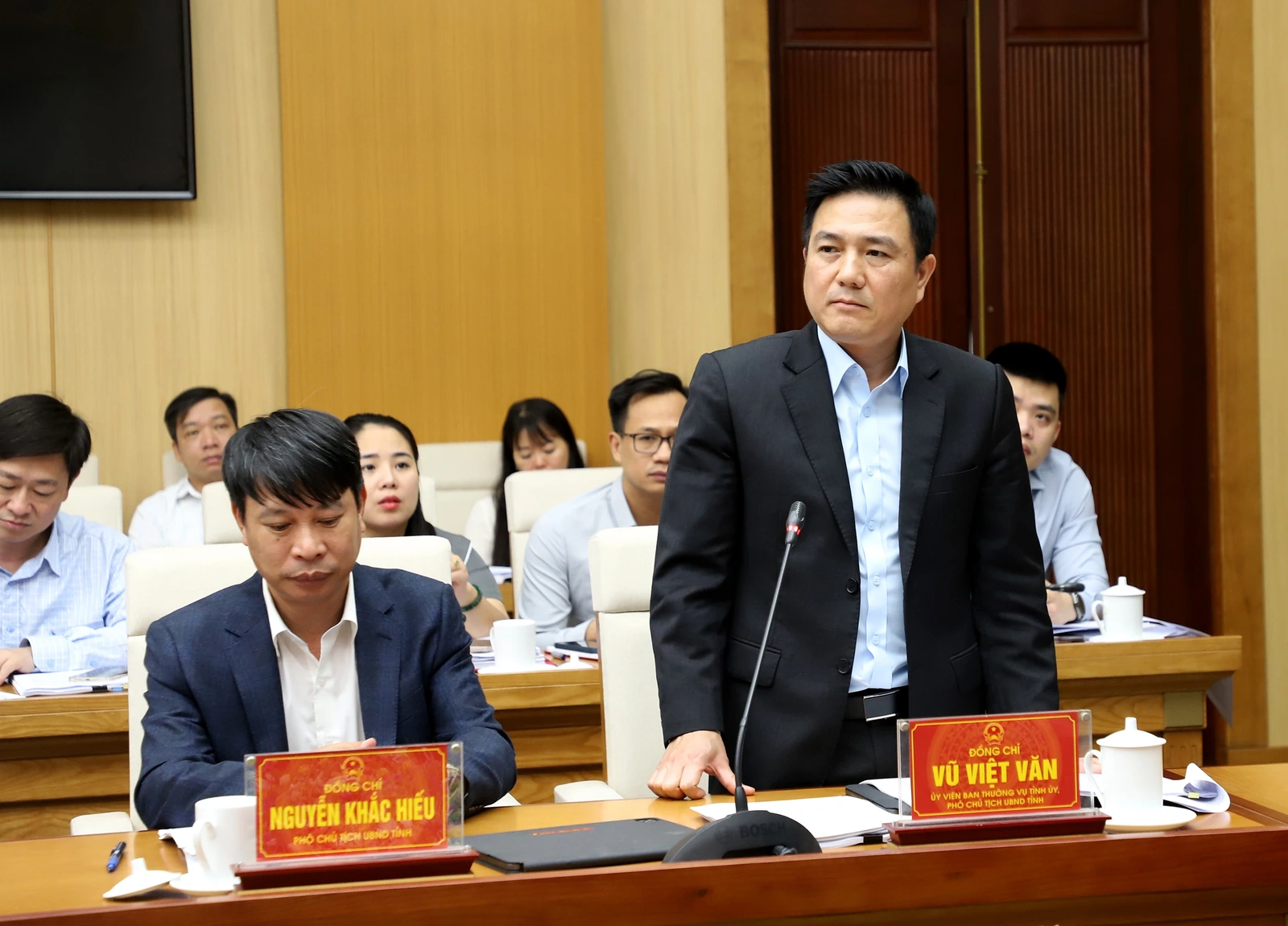 Đồng chí Phó Chủ tịch UBND tỉnh Vũ Việt Văn phát biểu tại hội nghị.