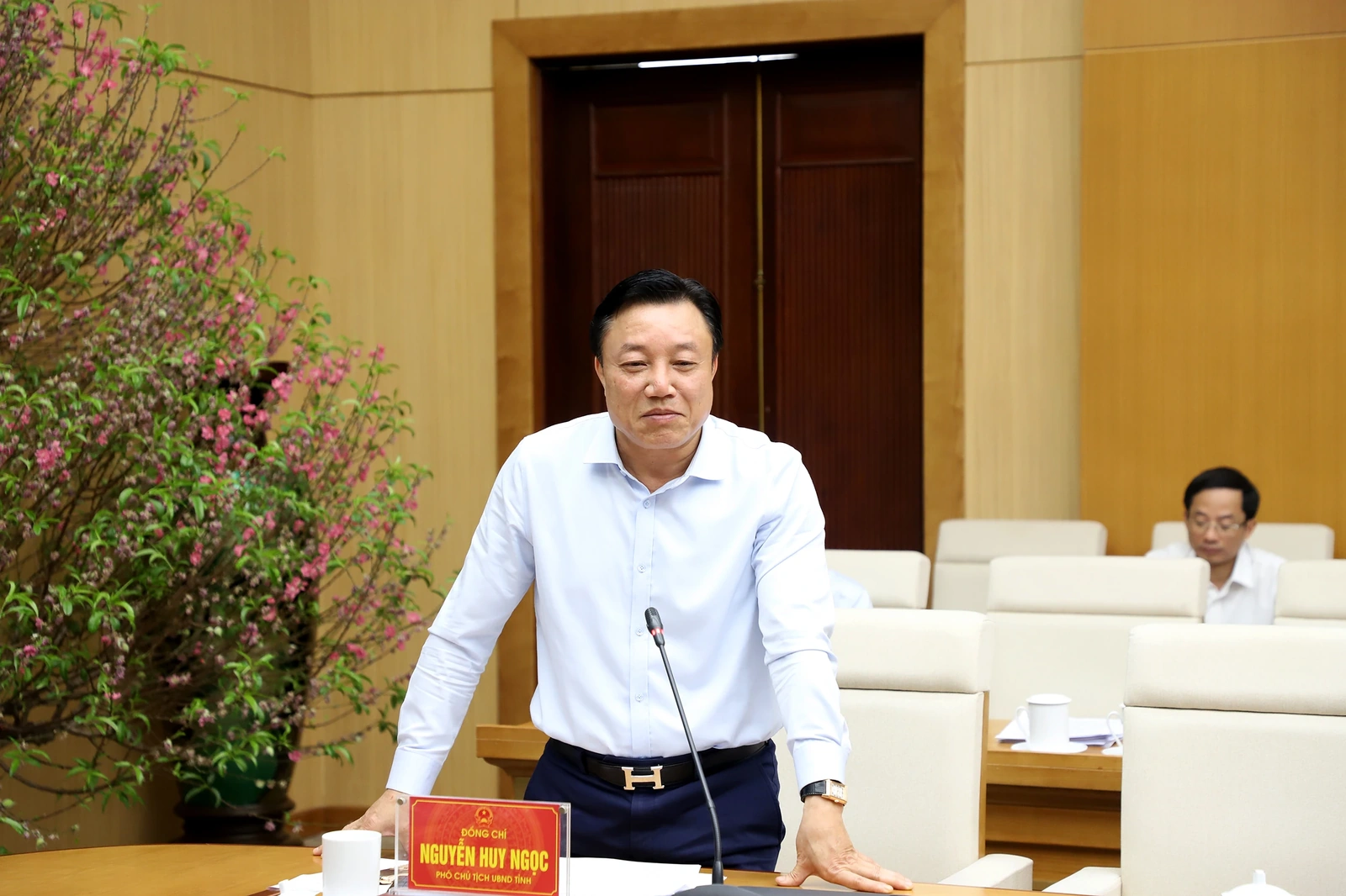 Đồng chí Phó Chủ tịch UBND tỉnh Nguyễn Huy Ngọc phát biểu tại hội nghị.