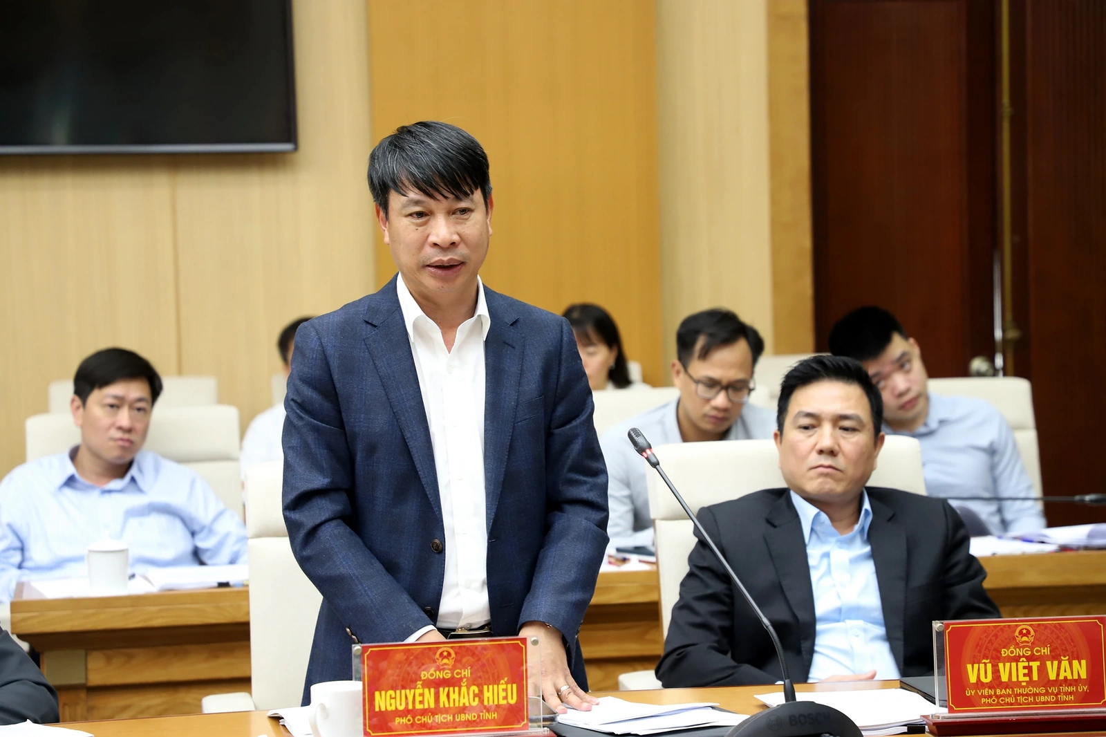 Đồng chí Phó Chủ tịch UBND tỉnh Nguyễn Khắc Hiếu phát biểu tại hội nghị.