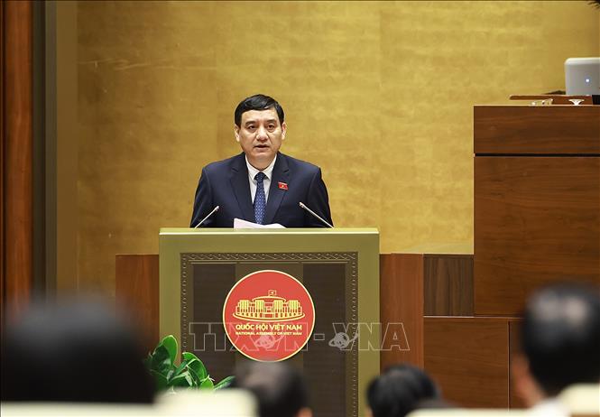 Bộ trưởng Ngoại giao Lê Hoài Trung, thừa ủy quyền của Thủ tướng Chính phủ trình bày Tờ trình về dự án Luật sửa đổi, bổ sung một số điều của Luật Cơ quan đại diện nước Cộng hòa xã hội chủ nghĩa Việt Nam ở nước ngoài. Ảnh: Dương Giang/TTXVN