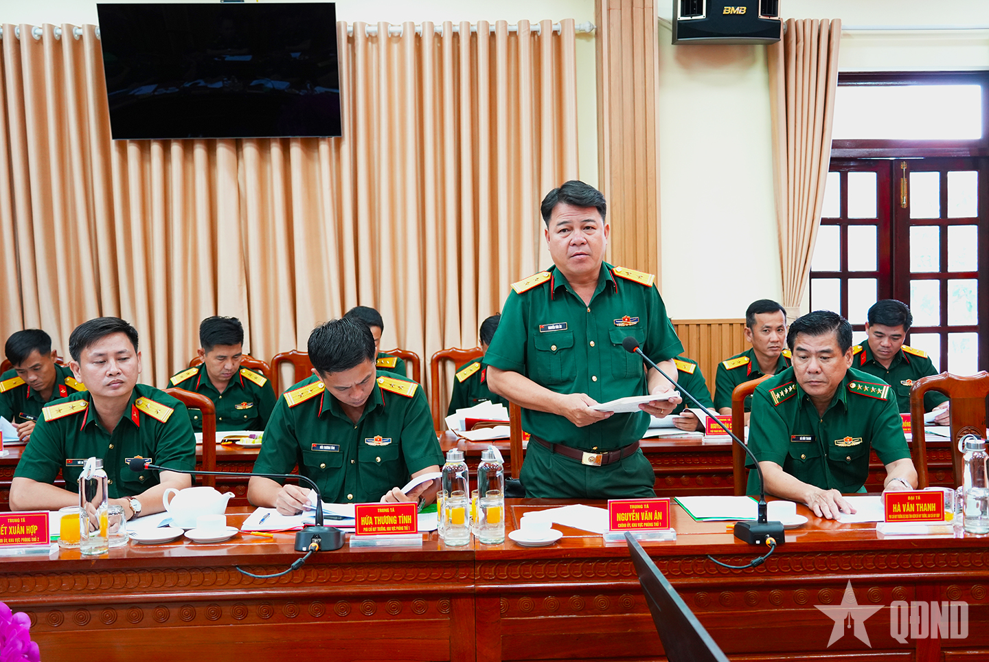 Trung tá Nguyễn Văn Ân, Chính ủy Phòng thủ khu vực 1 (Bạc Liêu) phát biểu ý kiến tại hội nghị.