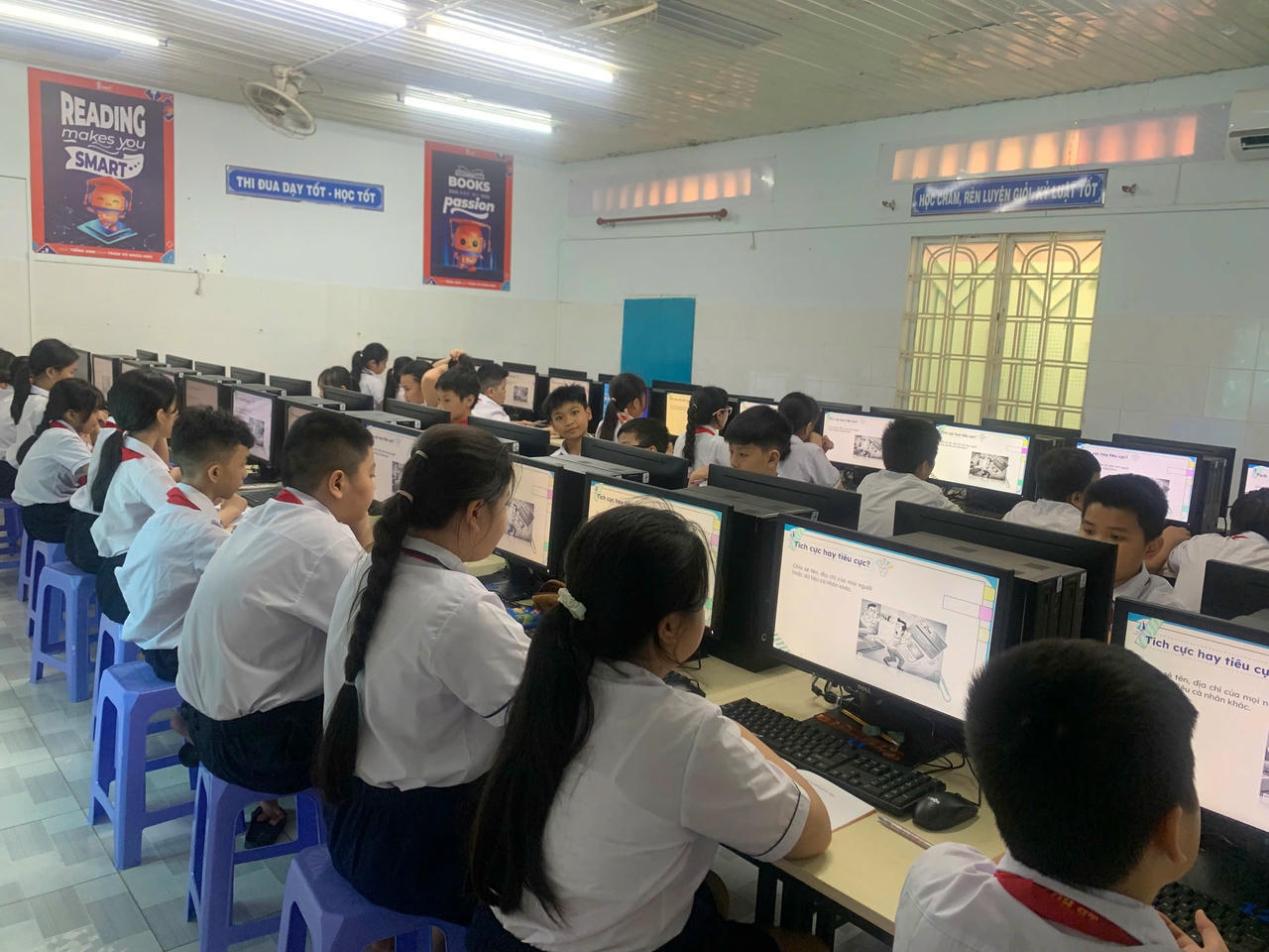 Học sinh Trường Tiểu học Đông Hội B, phường Dĩ An, TPHCM trong tiết học Tin học. Ảnh: NTCC.