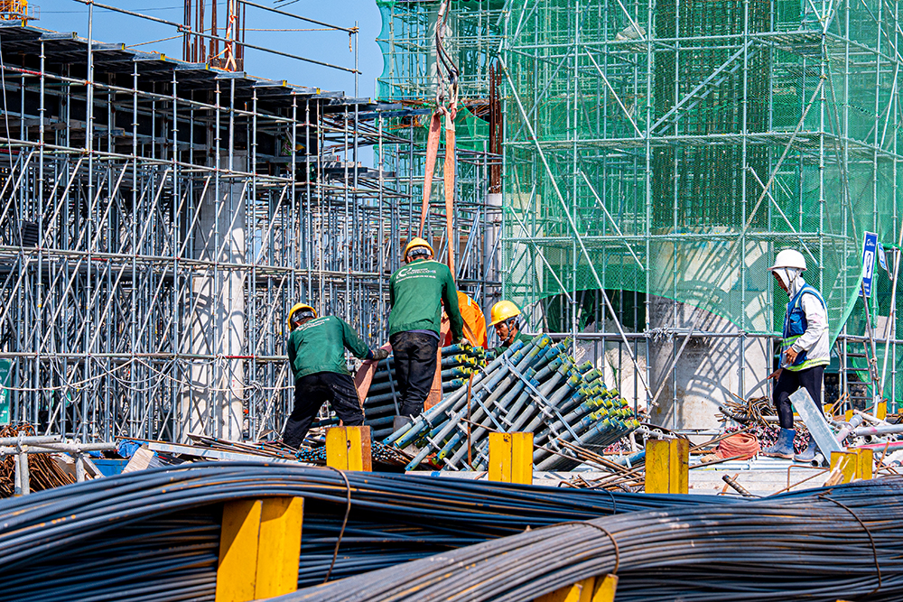 Công nhân thi công Trung tâm Hội nghị và Triển lãm APEC