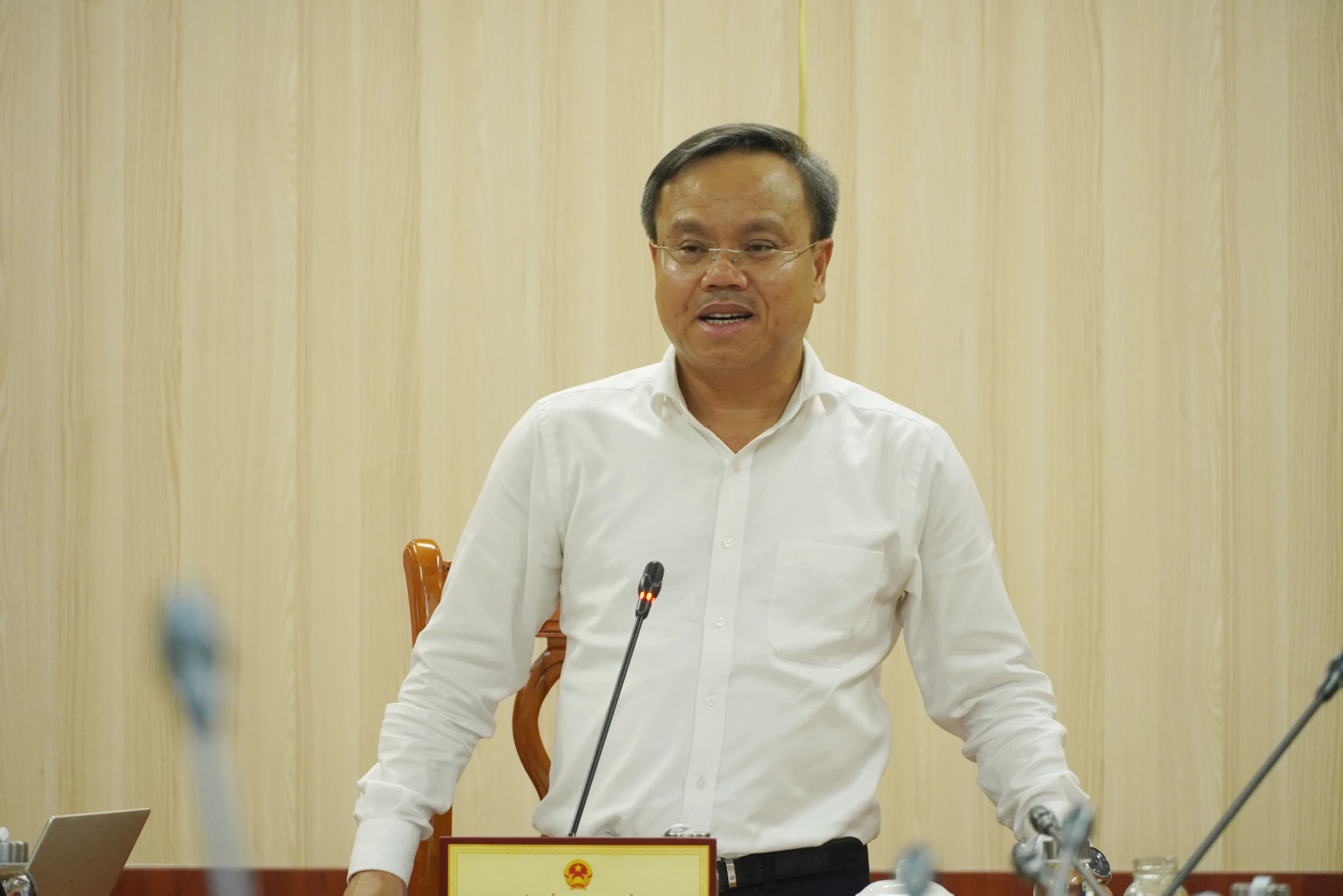 Đồng chí Lê Đức Tiến, Phó Chủ tịch UBND tỉnh chủ trì buổi làm việc - Ảnh: H.L