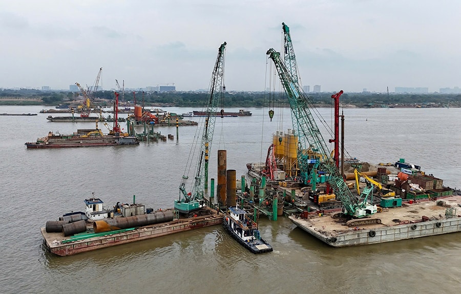 Tại các dự án xây dựng cầu Hồng Hà và Mễ Sở vượt sông Hồng trên tuyến đường Vành đai 4 - Vùng Thủ đô, các nhà thầu cũng đang huy động tối đa nguồn lực, tranh thủ lúc thời tiết thuận lợi, bố trí tổ chức nhiều mũi thi công trên các phần mặt bằng đã được bàn giao, quyết tâm hoàn thành toàn bộ kết cấu phần dưới vào cuối tháng 5-2026 trước khi lũ tiểu mãn về.