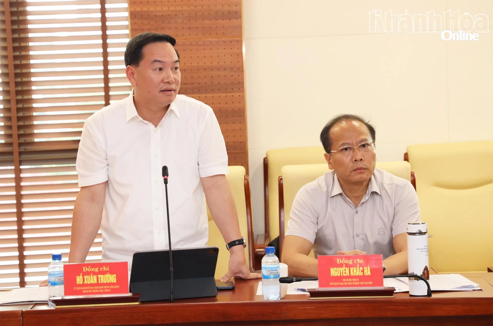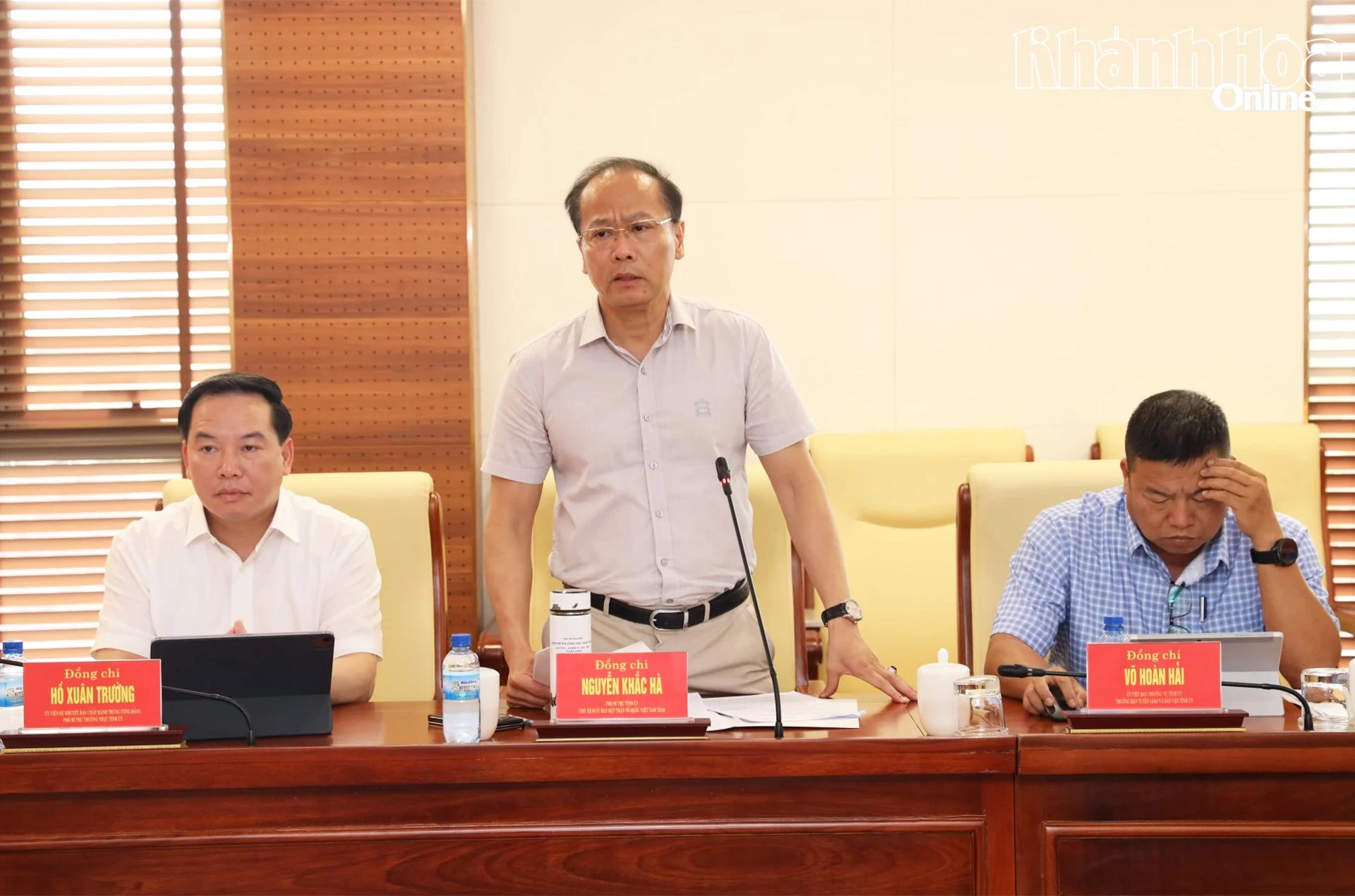 Chiều 6-4, đồng chí Trần Phong - Ủy viên Trung ương Đảng, Bí thư Tỉnh ủy Khánh Hòa chủ trì phiên họp thứ 3 của Ban Chỉ đạo giải phóng mặt bằng (GPMB) thực hiện Dự án Đường sắt tốc độ cao trên trục Bắc - Nam và các dự án trọng điểm, động lực của tỉnh. Tham dự phiên họp có các đồng chí: Hồ Xuân Trường - Ủy viên Dự khuyết Trung ương Đảng, Phó Bí thư Thường trực Tỉnh ủy; Lâm Đông - Phó Bí thư Tỉnh ủy, Chủ tịch HĐND tỉnh; Nguyễn Việt Hùng - Phó Bí thư Tỉnh ủy, Chủ tịch UBND tỉnh; Nguyễn Khắc Hà - Phó Bí thư Tỉnh ủy, Chủ tịch Ủy ban MTTQ Việt Nam tỉnh; các đồng chí Ủy viên Ban Thường vụ Tỉnh ủy; các đồng chí Phó Chủ tịch UBND tỉnh; lãnh đạo các sở, ban, ngành.