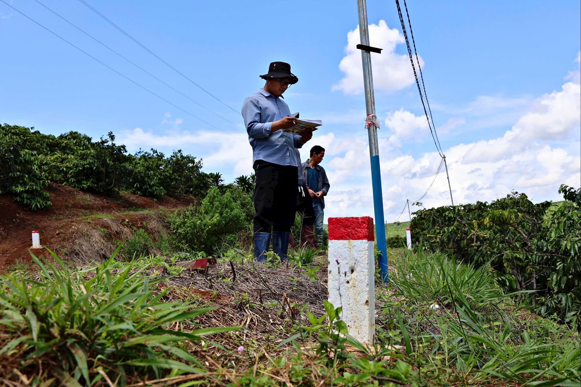 Cán bộ Trung tâm Phát triển Quỹ đất tỉnh đang tiếp tục thực hiện công tác kiểm đếm và xác nhận pháp lý các thửa đất để sớm thực hiện chi trả hỗ trợ đền bù cho người dân