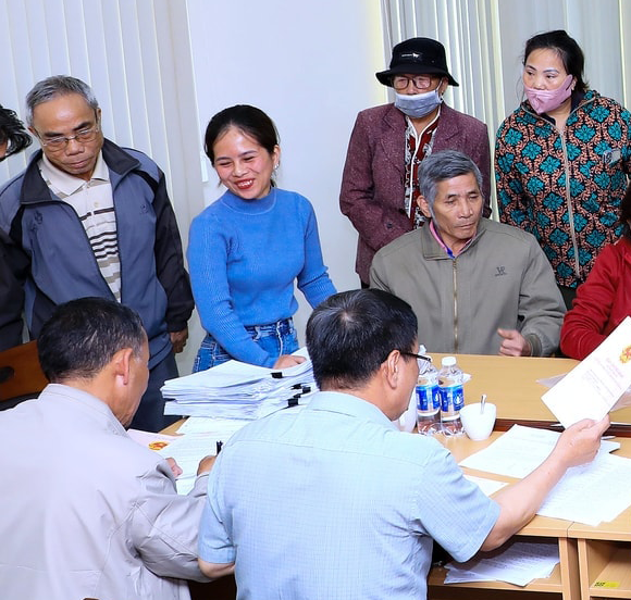 Người dân các địa phương chuẩn bị đầy đủ hồ sơ, giấy tờ để hoàn tất thủ tục nhận tiền đền bù. Ảnh: Lê Phước