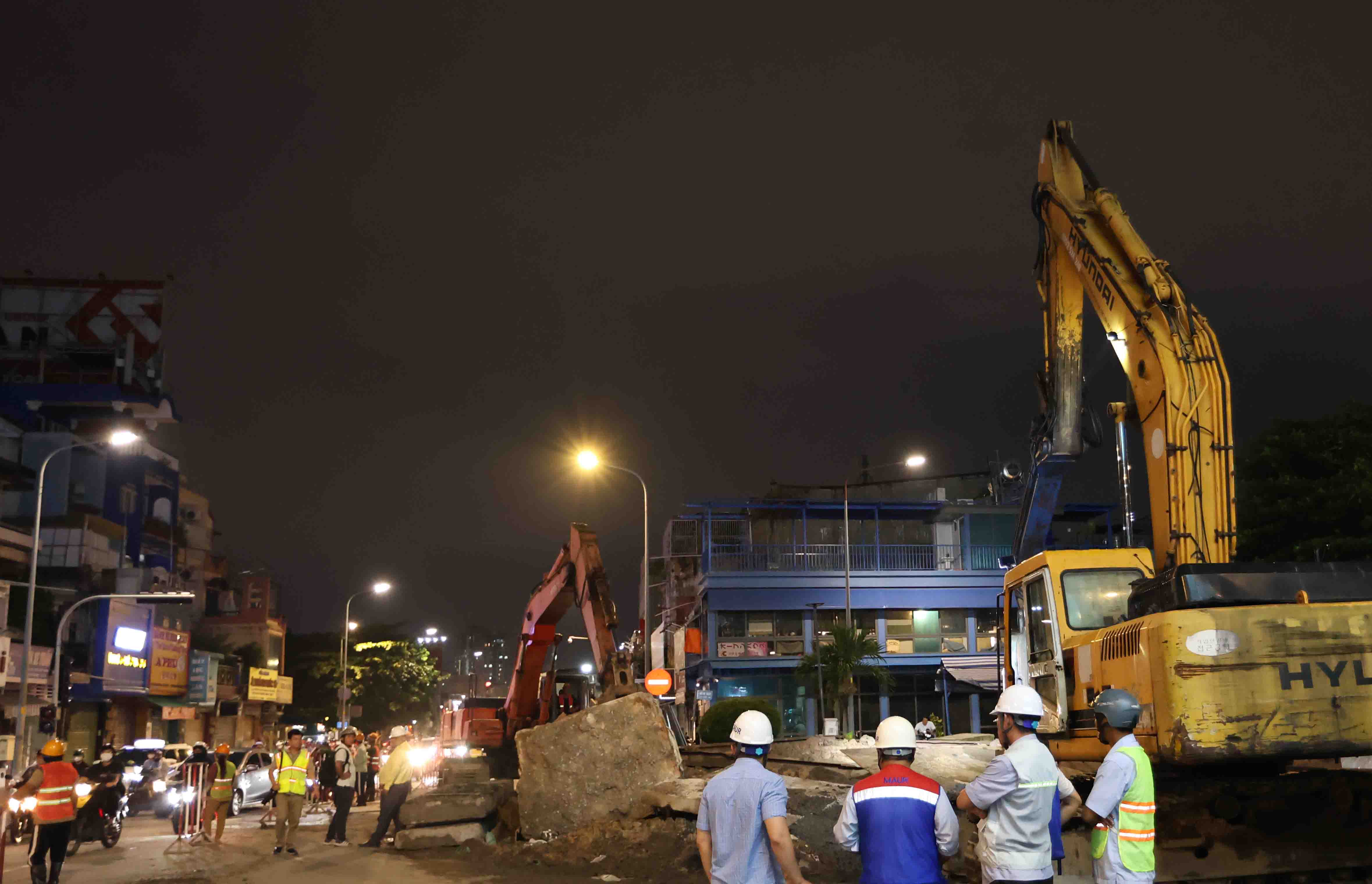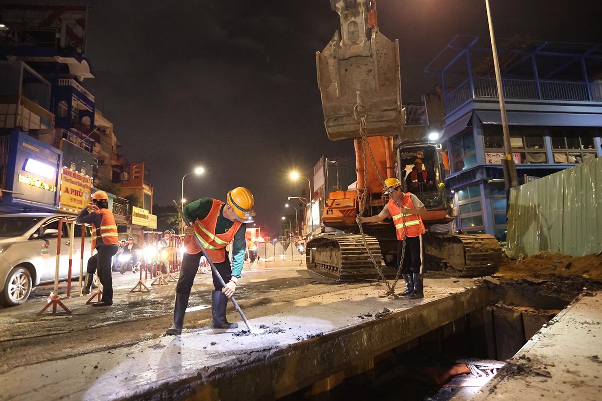 Đêm ngày 13/11, đoàn lãnh đạo MAUR đến kiểm tra điểm lắp cống hộp khu vực phường Bảy Hiền, thuộc tuyến Metro số 2.