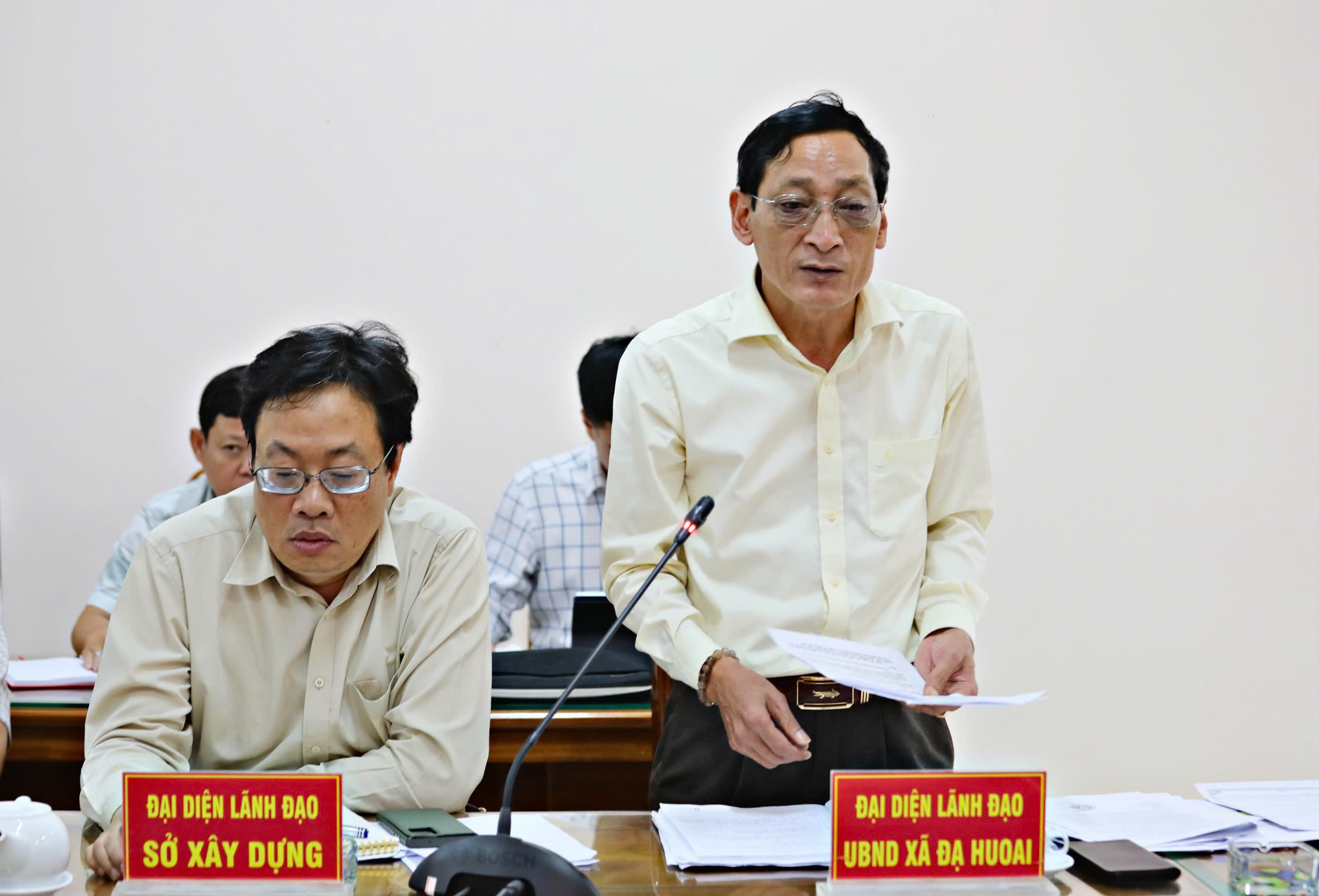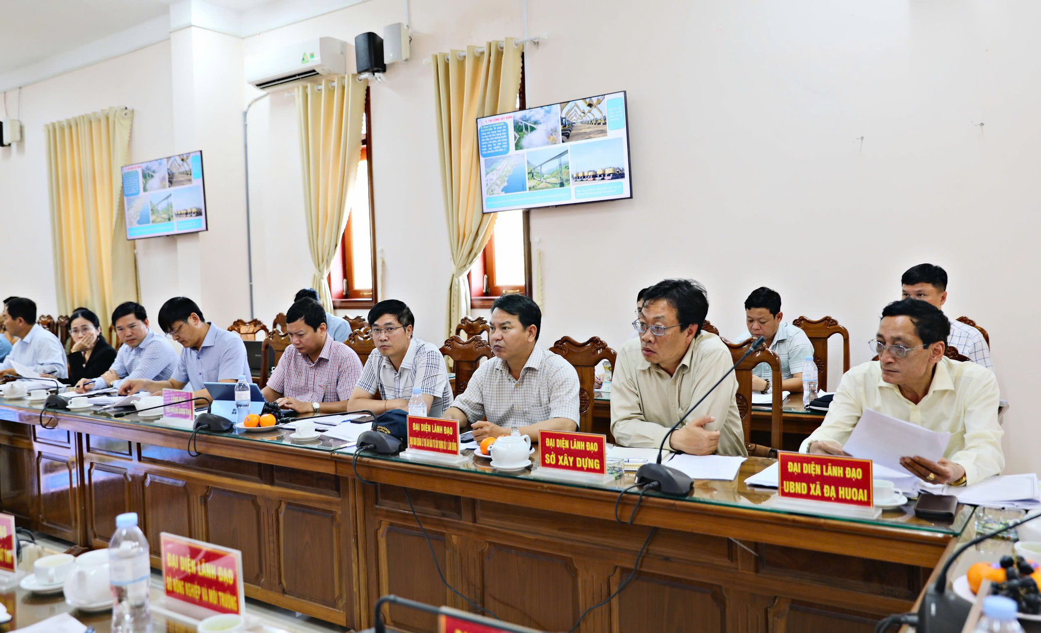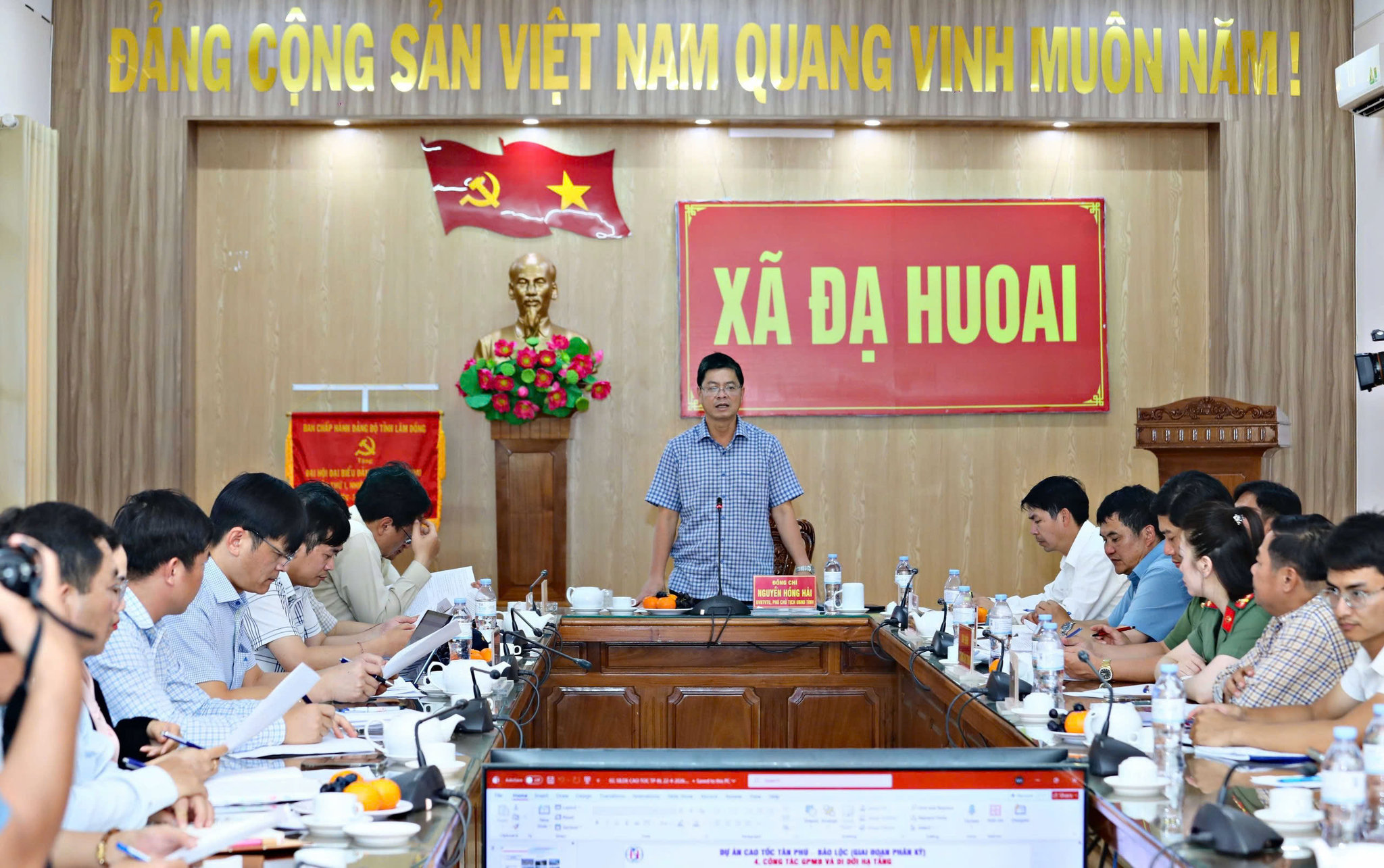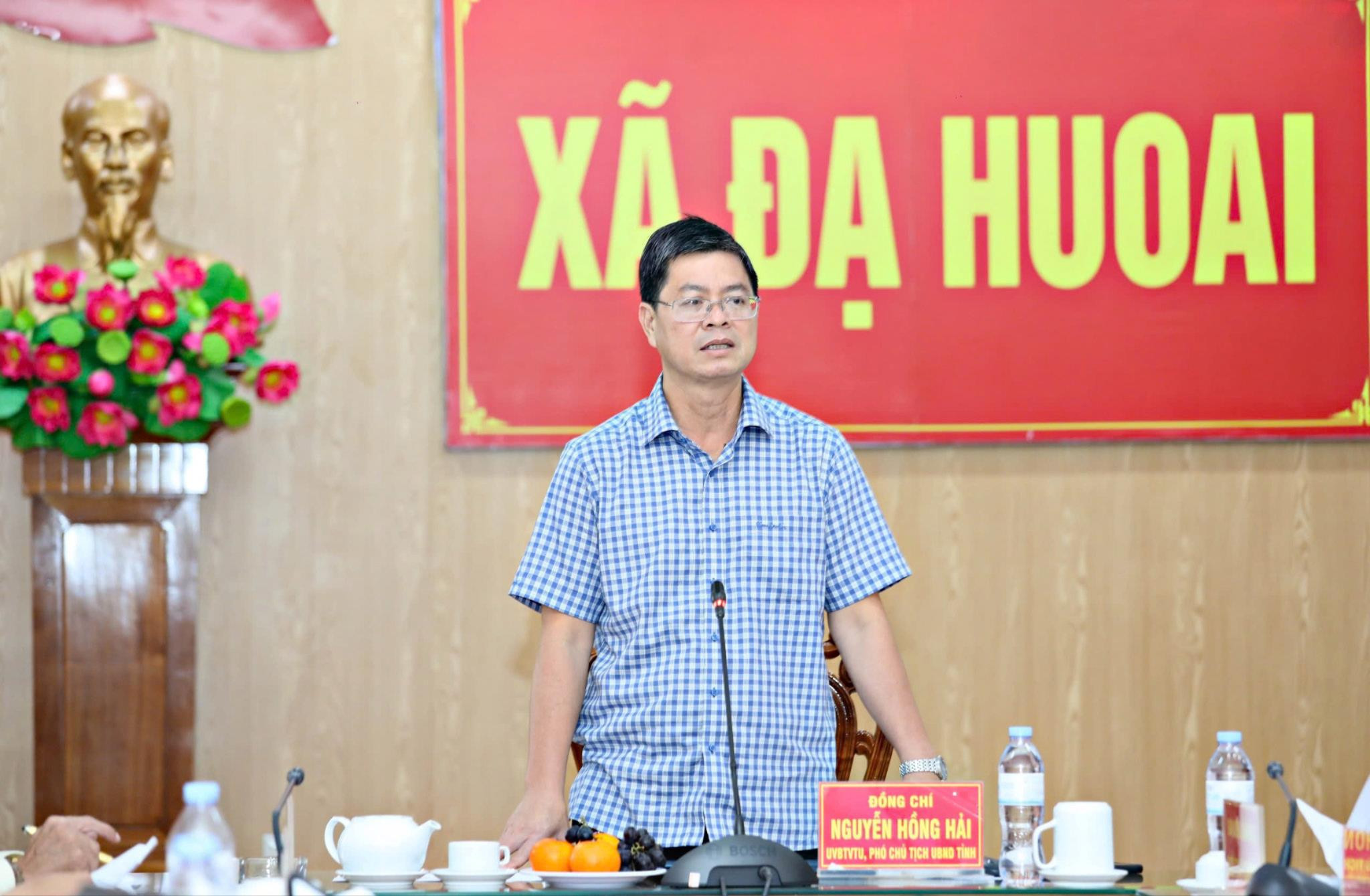 Đồng chí Nguyễn Hồng Hải, Ủy viên Ban Thường vụ Tỉnh ủy, Phó Chủ tịch UBND tỉnh Lâm Đồng làm việc với lãnh đạo các cơ quan, đơn vị và xã Đạ Huoai về tiến độ dự án cao tốc Tân Phú - Bảo Lộc đi qua địa bàn