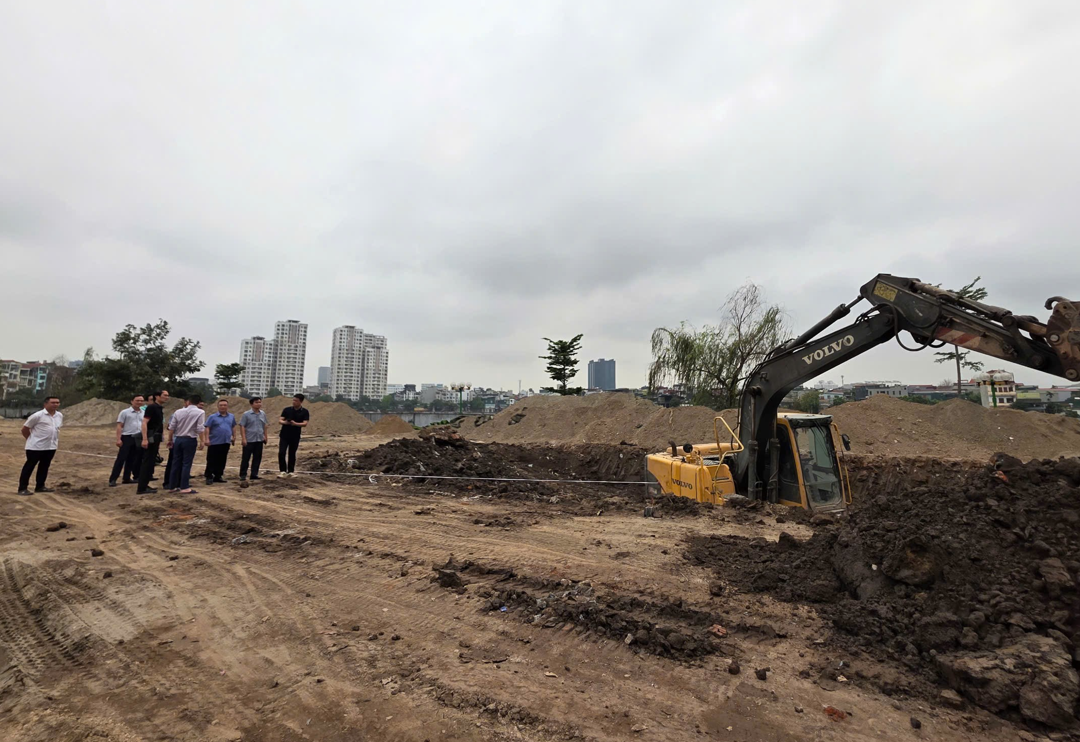 Trực tiếp kiểm tra tại hiện trường, Bí thư Đảng ủy, Chủ tịch HĐND phường Khương Đình Võ Đăng Dũng ghi nhận sự nỗ lực của các đơn vị thi công và lực lượng tham gia giải phóng mặt bằng, đồng thời chỉ rõ những tồn tại cần khắc phục.