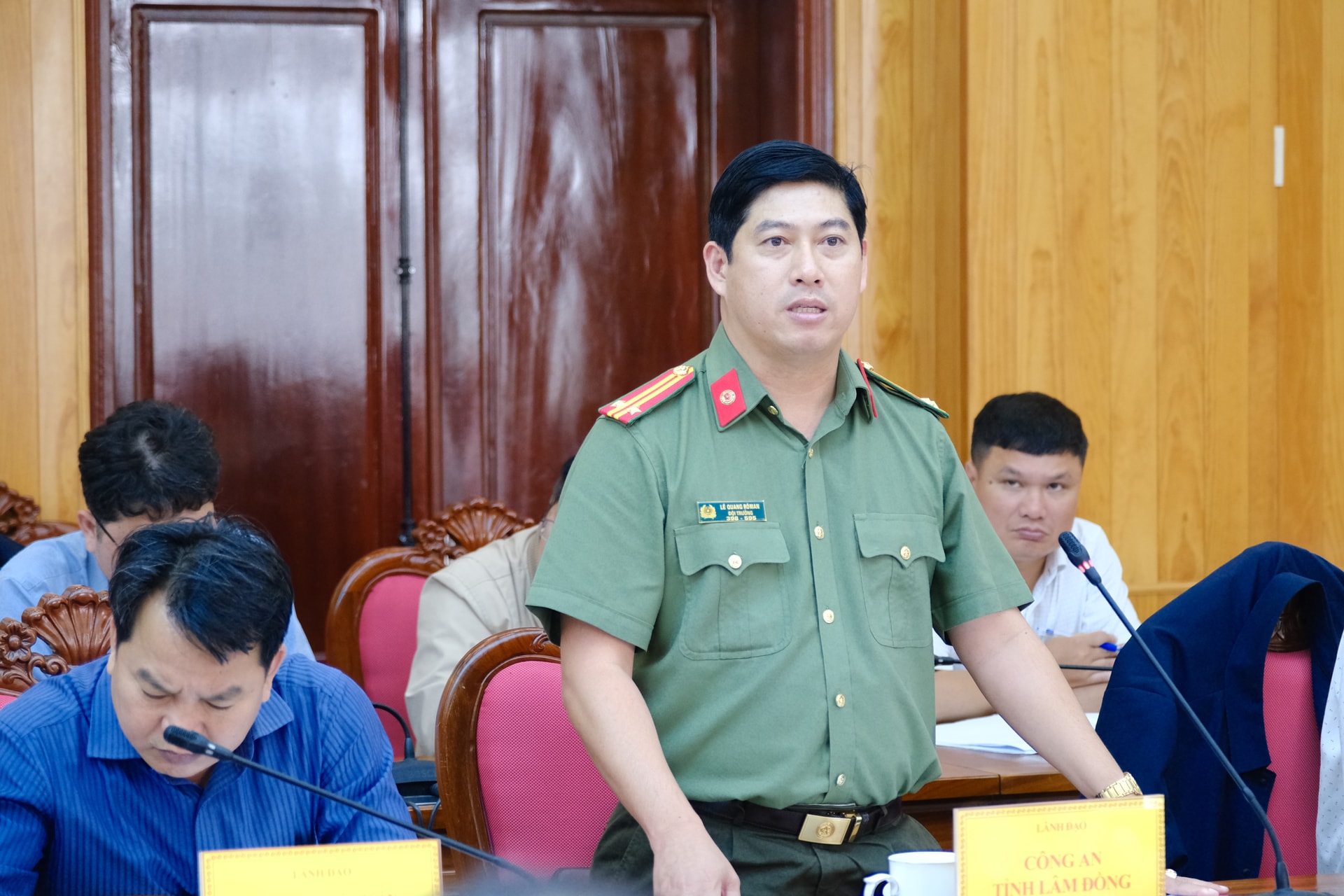 Đại diện lãnh đạo Công an tỉnh Lâm Đồng phát biểu tại buổi làm việc