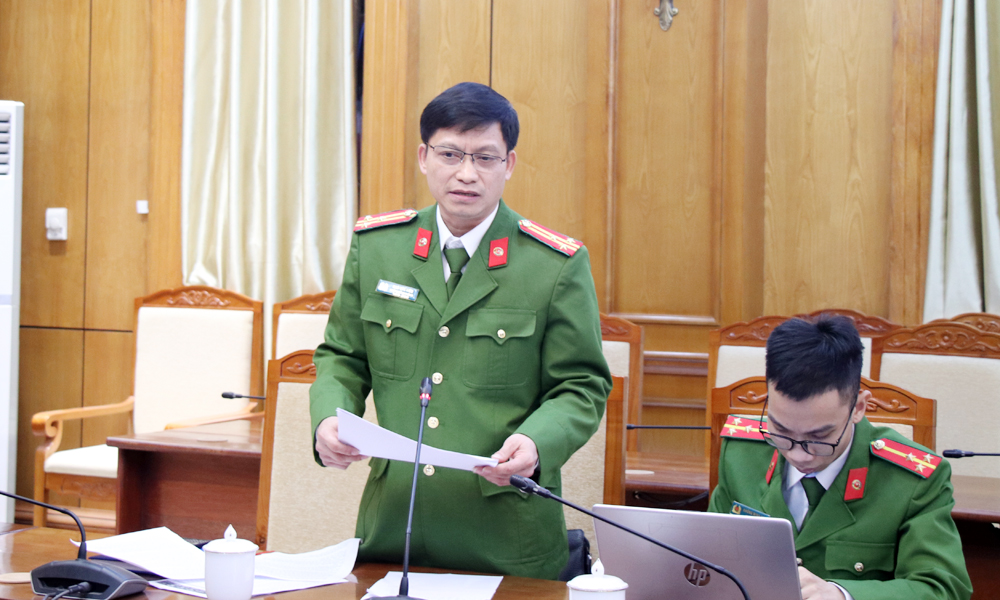 Đại diện Công an tỉnh trao đổi tại hội nghị.
