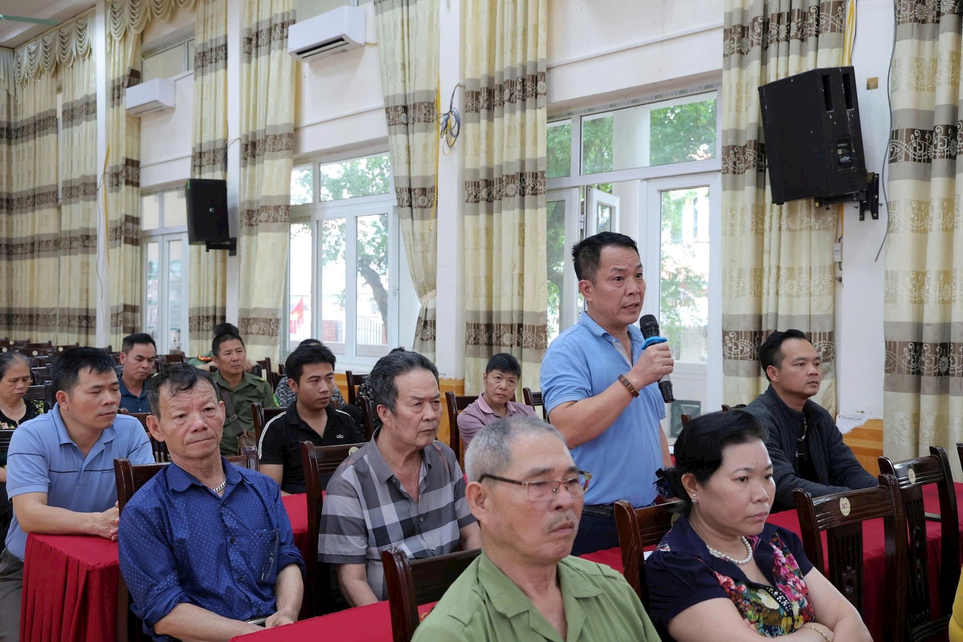 Đại diện các hộ dân thôn Đồi 1 có đất thu hồi thực hiện Dự án đối thoại và được giải đáp. Ảnh: Kim Thoa