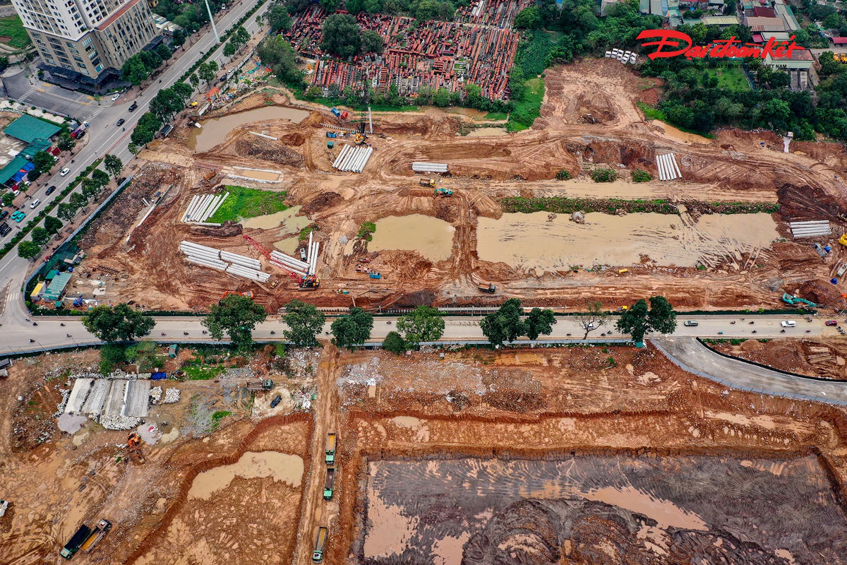 Ghi nhận tại công trường cho thấy, các hạng mục chính như san nền, thi công kè hồ và xây dựng hệ thống thoát nước xung quanh đang được triển khai đồng bộ. Nhiều mũi thi công được tổ chức song song, máy móc và nhân lực được huy động tối đa nhằm bảo đảm tiến độ, đặc biệt khi mùa mưa đang đến gần.