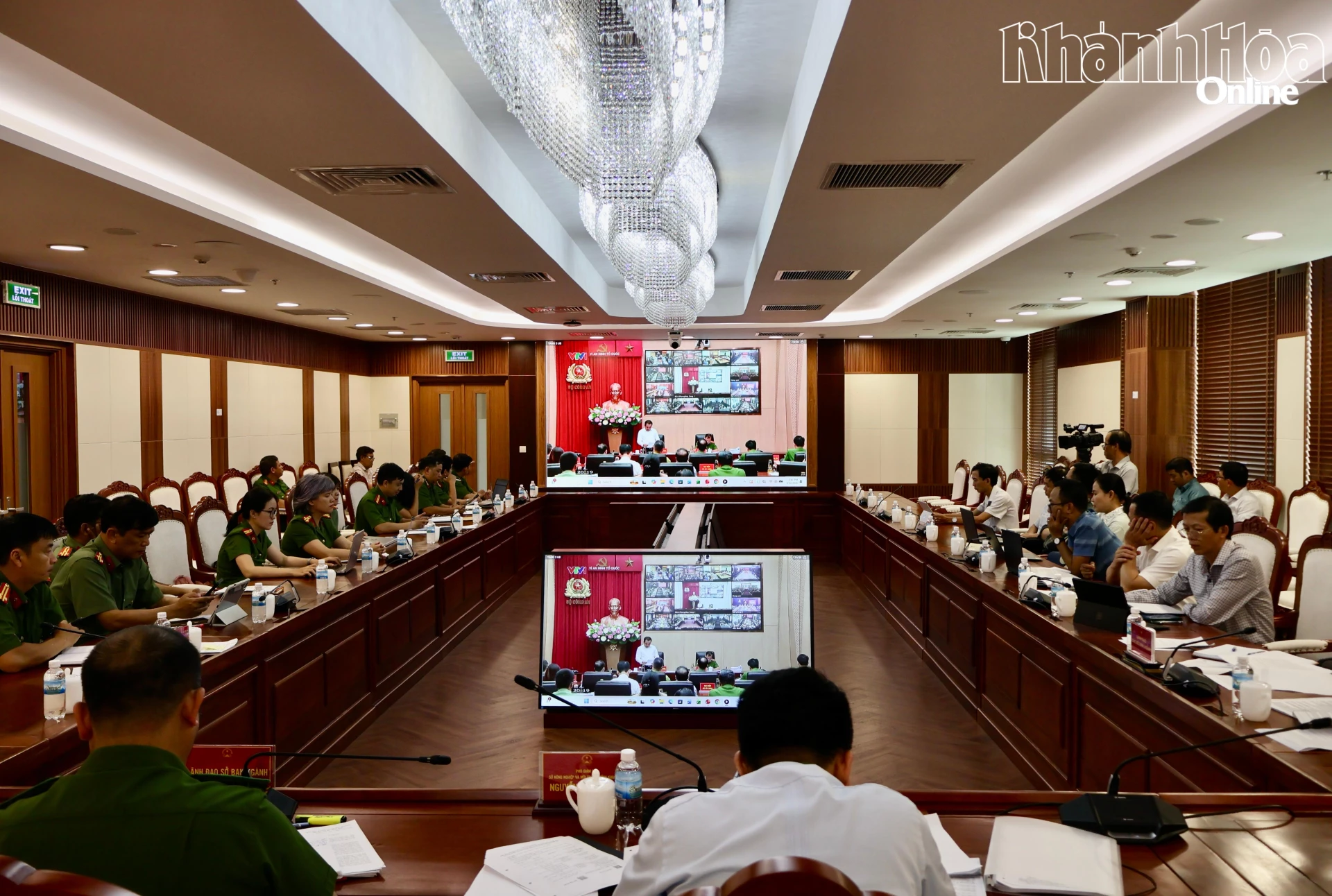 Lãnh đạo, đại diện các sở, ban, ngành tỉnh Khánh Hòa dự hội nghị trực tuyến.