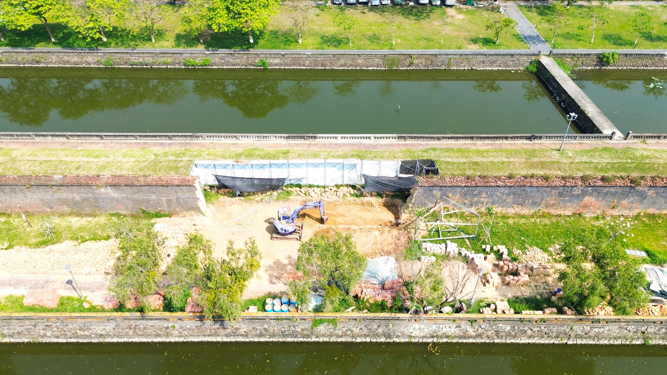 Nhà thầu đang triển khai thi công xử lý tình huống khẩn cấp sập đổ tại đoạn tường thành Hoàng thành Huế.
