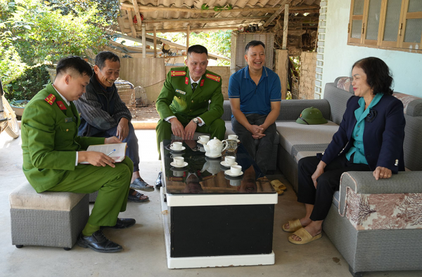 Công an xã Quy Mông (Lào Cai) tuyên truyền vận động người dân khẩn trương bàn giao mặt bằng để triển khai dự án.