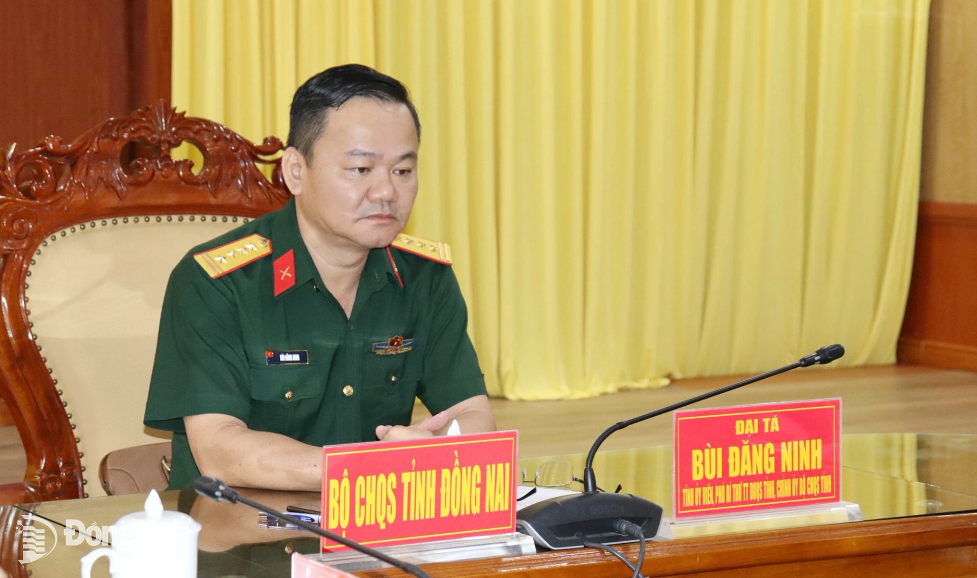 Dự hội nghị tại điểm cầu Đồng Nai có Đại tá Bùi Đăng Ninh, Tỉnh ủy viên, Chính ủy Bộ Chỉ huy Quân sự (CHQS) tỉnh, Phó Trưởng ban Thường trực Ban Chỉ đạo 515 tỉnh Đồng Nai và các đại biểu.