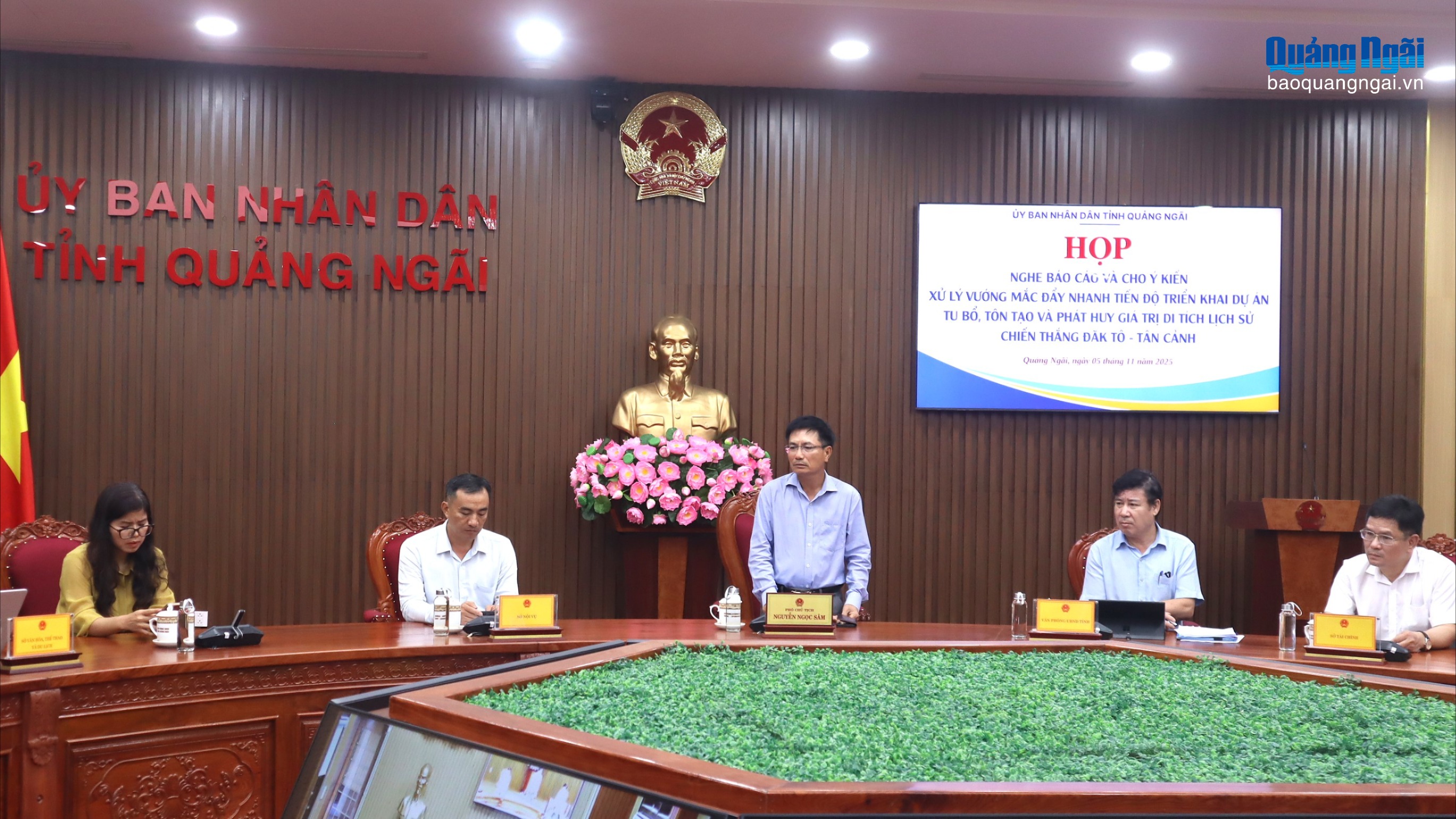 Chiều 5/11, Phó Chủ tịch UBND tỉnh Nguyễn Ngọc Sâm chủ trì cuộc họp xử lý vướng mắc, để đẩy nhanh tiến độ triển khai dự án tu bổ, tôn tạo và phát huy giá trị di tích lịch sử chiến thắng Đăk Tô - Tân Cảnh bằng hình thức trực tiếp và trực tuyến với xã Đăk Tô.