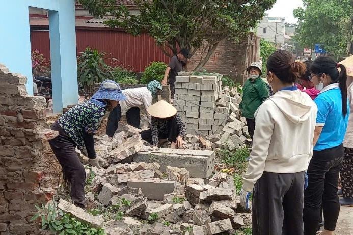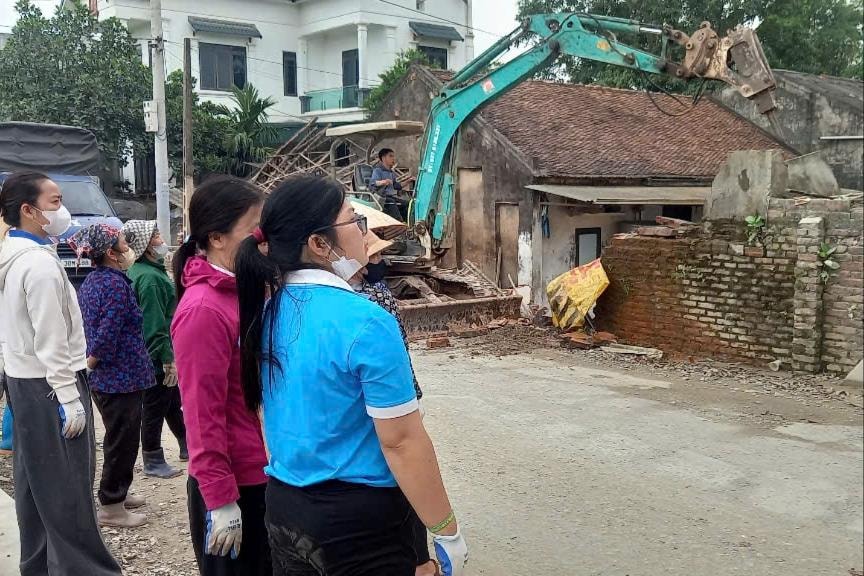 Một số hình ảnh đoàn viên, thanh niên, hội viên phụ nữ tham gia hỗ trợ tháo dỡ cùng gia đình bàn giao mặt bằng để thi công tuyến đường Quảng Bị - Thượng Vực. Ảnh: Cơ sở