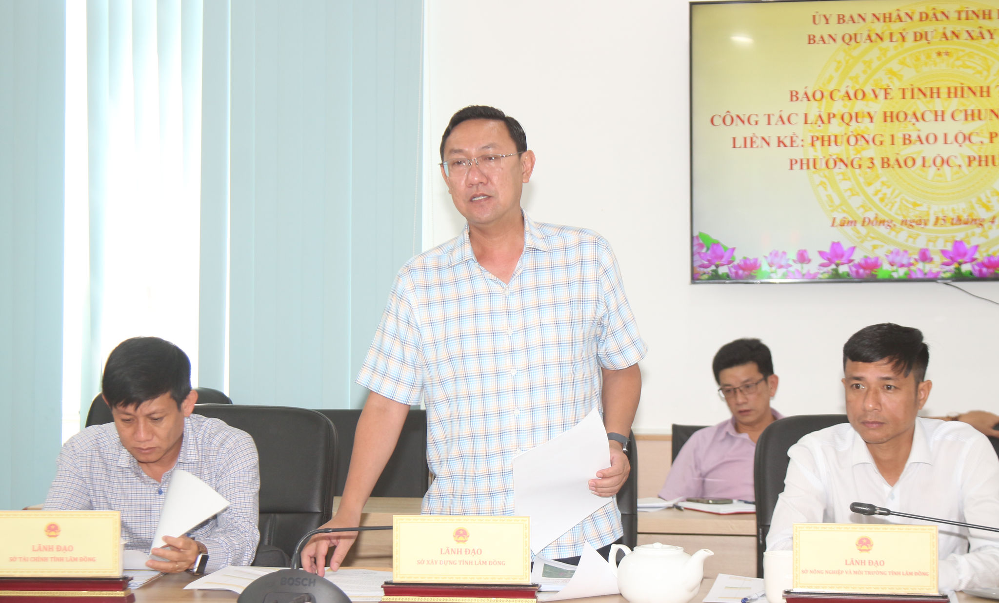 Đại diện lãnh đạo Ban QLDAĐTXD số 1 báo cáo tiến độ lập quy hoạch chung liên phường khu vực Bảo Lộc