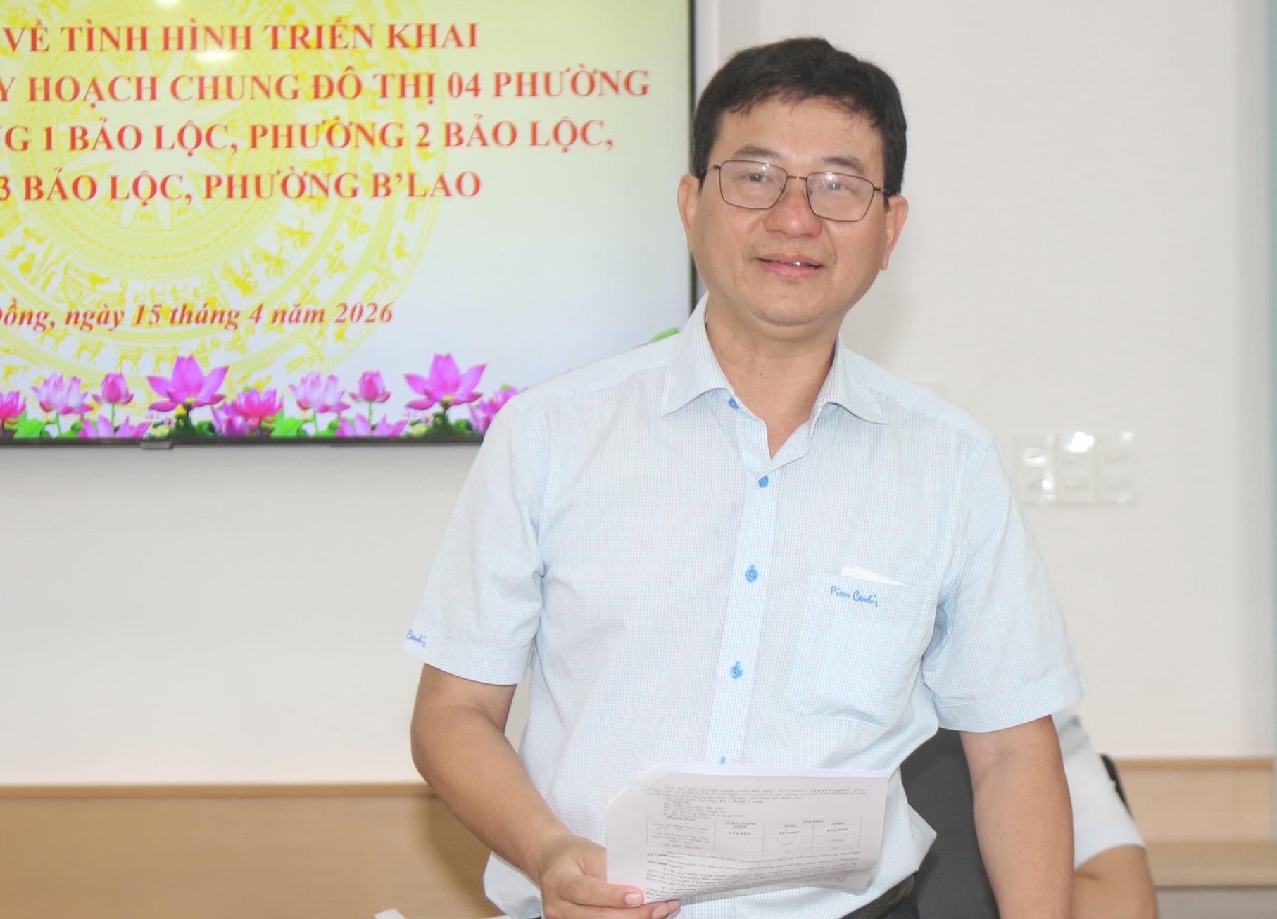 Phát biểu tại buổi làm việc, đồng chí Nguyễn Hồng Hải, Ủy viên Ban Thường vụ Tỉnh ủy, Phó Chủ tịch UBND tỉnh Lâm Đồng nhấn mạnh việc triển khai quy hoạch chung đô thị liên phường có ý nghĩa đặc biệt quan trọng, nhằm phát huy hiệu quả các lợi thế sẵn có, tạo nền tảng cho đô thị Bảo Lộc phát triển bền vững giai đoạn 2026 – 2030, tầm nhìn đến năm 2050.